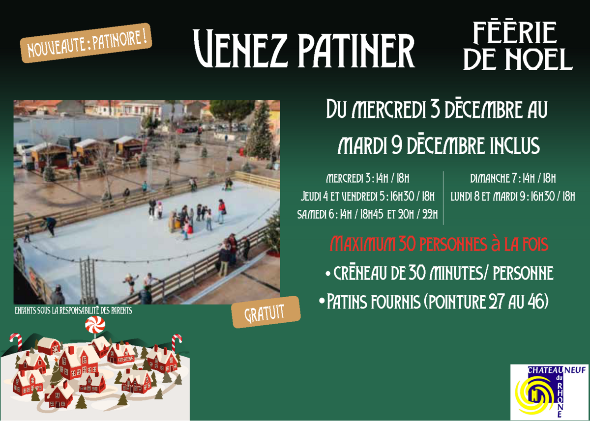 📅 Du mercredi 3 décembre au mardi 9 décembre inclus, venez glisser en famille ou entre amis :