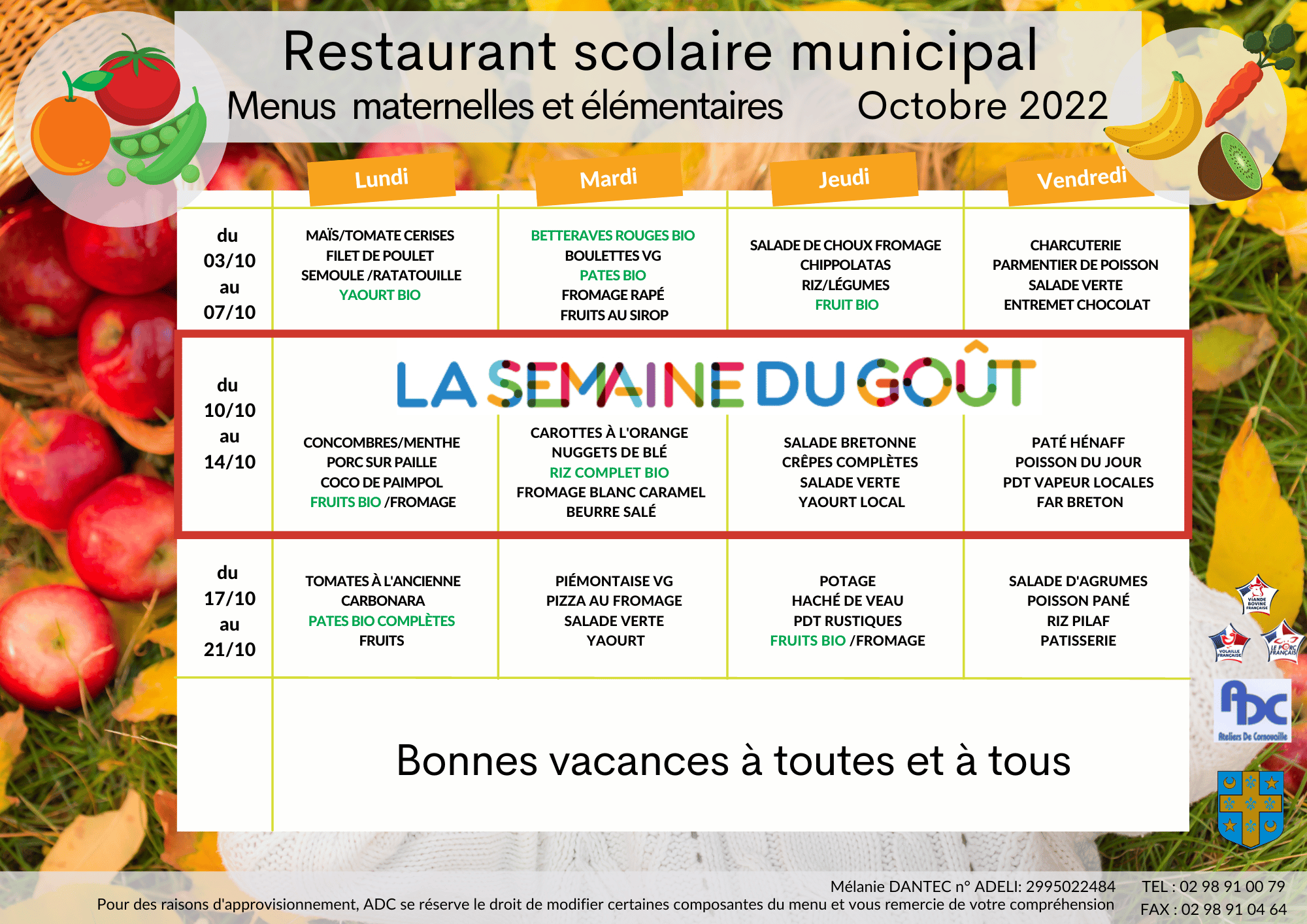 Menus d'octobre 2022