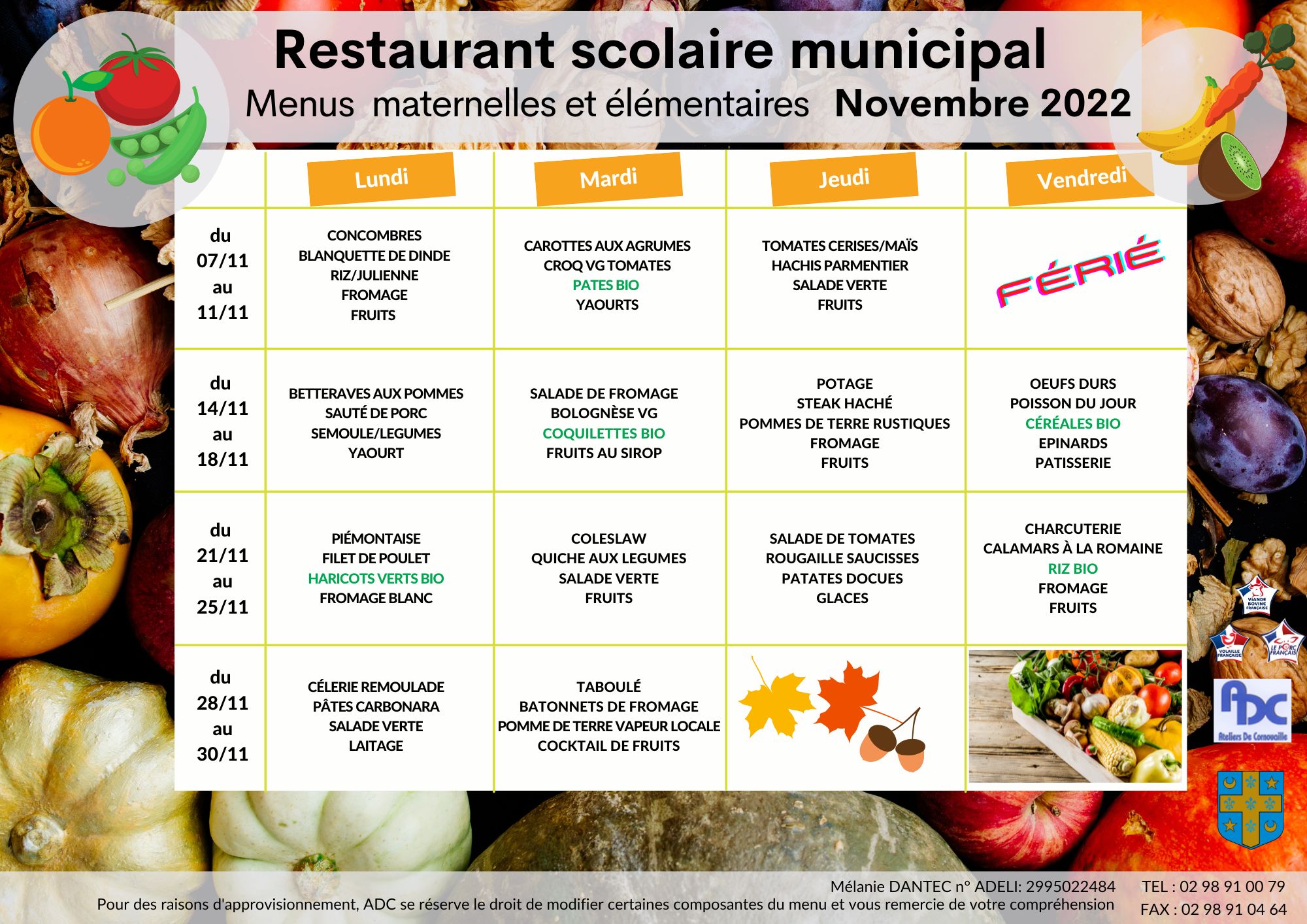 Su ayuntamiento / Noticias / Ecole : menu de Novembre