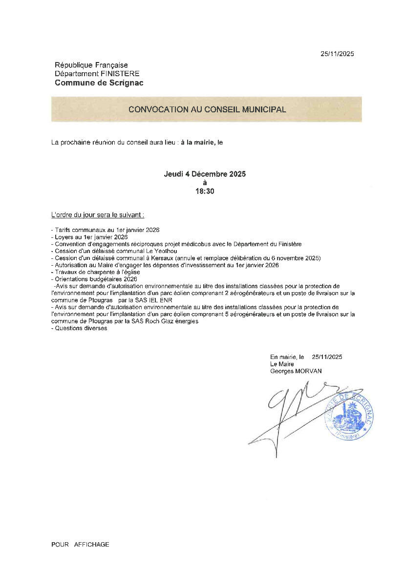 Conseil municipal le jeudi 4 décembre 2025 à 18h30