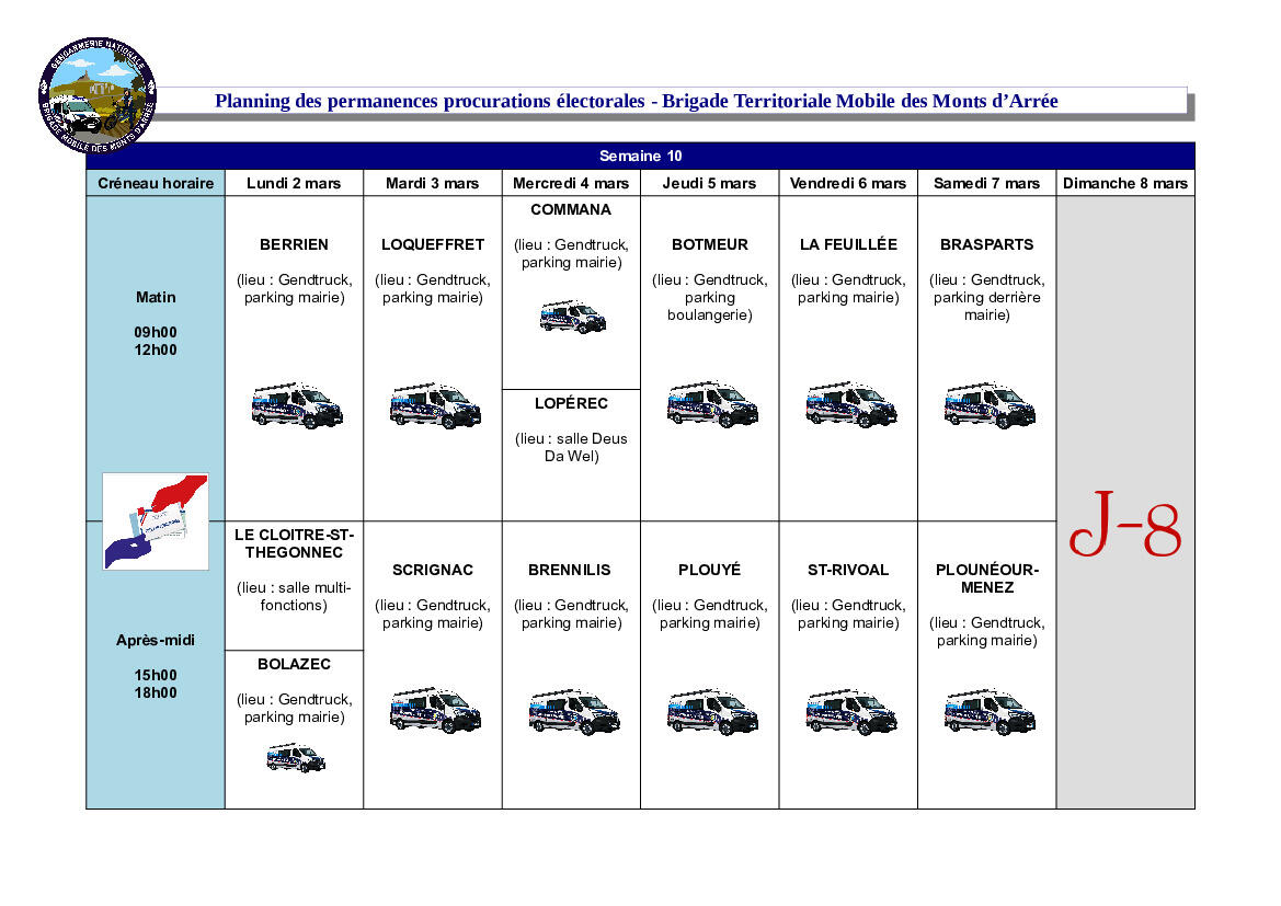 La Brigade Mobile des Monts d'Arrée organise des permanences de procurations électorales pour les élections municipales des 15 et 22 mars.