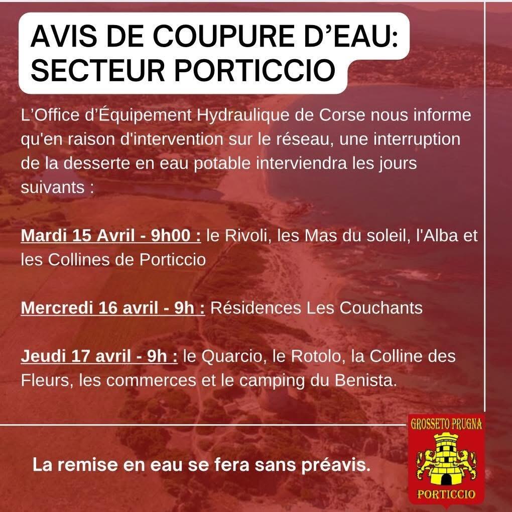 💦🚿COUPURE D’EAU EN COURS ET À VENIR  - PORTICCIO 🚿💦