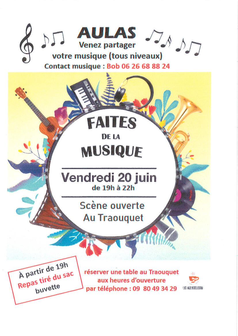 L'Association "Au Traouquet" propose de partager votre musique le 20 juin 2025.