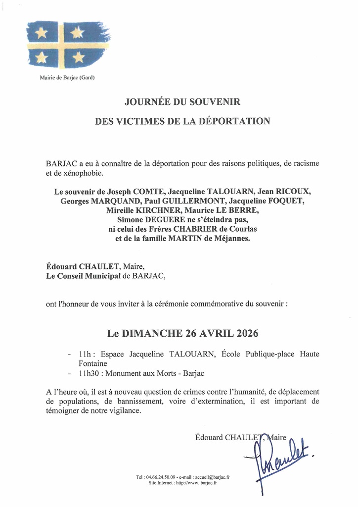 / 26 avril -JOURNÉE DU SOUVENIR DES VICTIMES DE LA DÉPORTATION