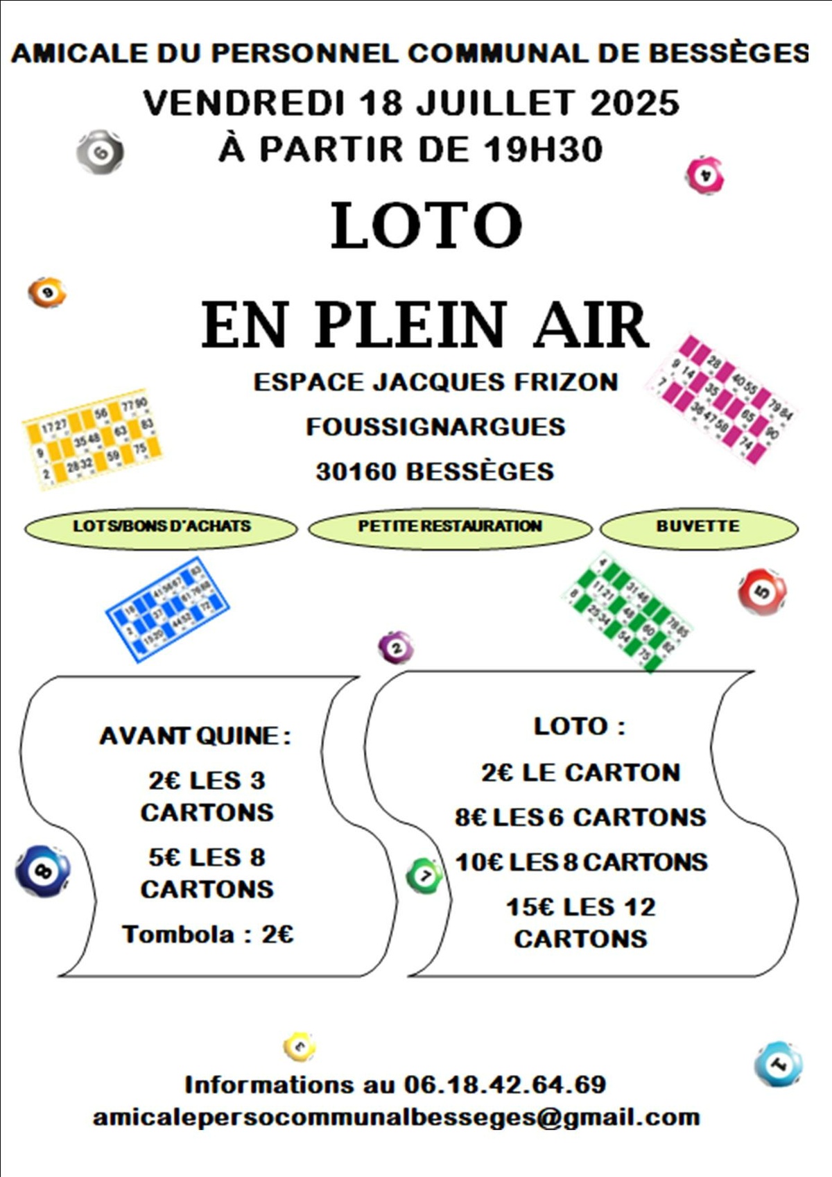 Loto en plein air 16/7/25 Vendredi 18 juillet à partir de 19h30 - Espace Jacques Frizon / Foussignargues