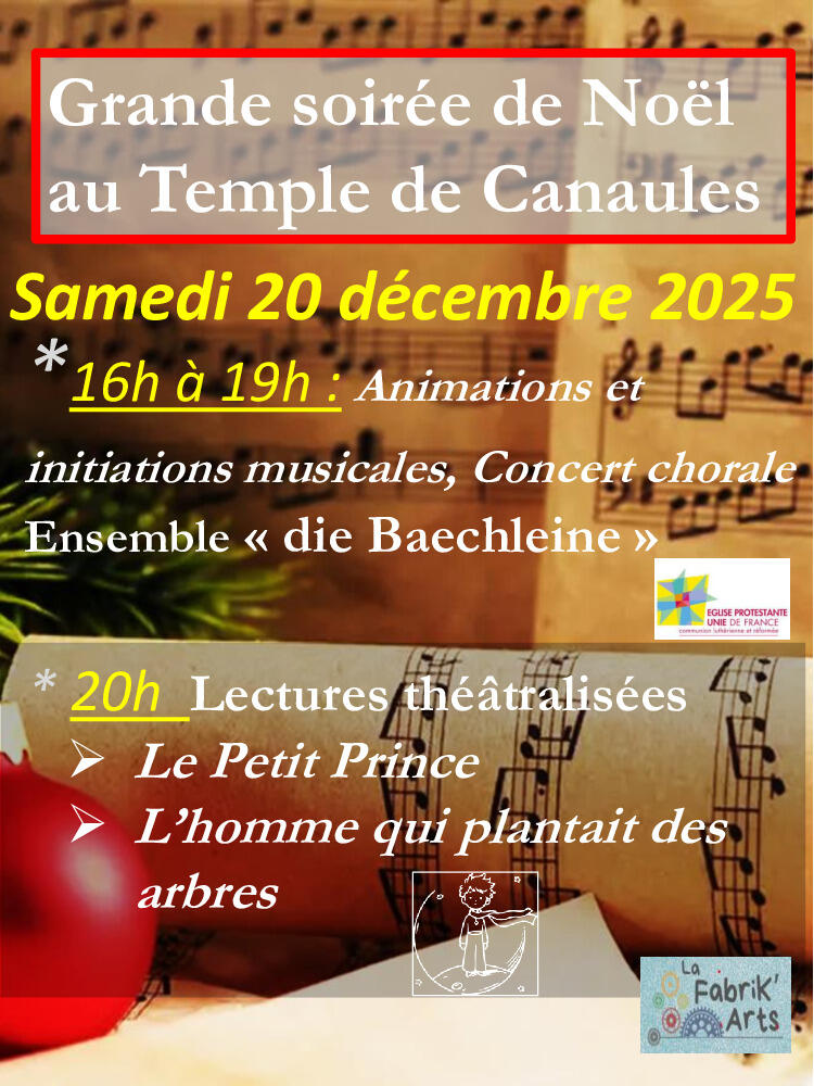 Grande soirée de Noël au temple de Canaules 15/12/25 Au temple de Canaules, venez fêter Noël avec nous Samedi 20 décembre 2025