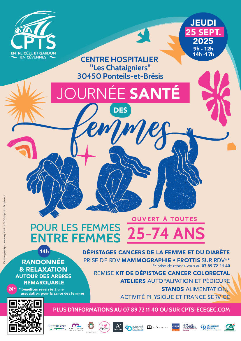 La Journée de prévention pour les femmes aura lieu le 25 septembre 2025 au Centre Hospitalier de Ponteils en collaboration avec la Communauté Professionnelle Territoriale de Santé (CPTS) ''Entre Cèze Et Gardon En Cévennes''.