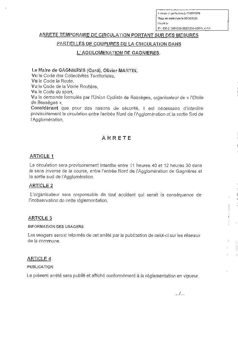 ARRETÉ TEMPORAIRE DE CIRCULATION
