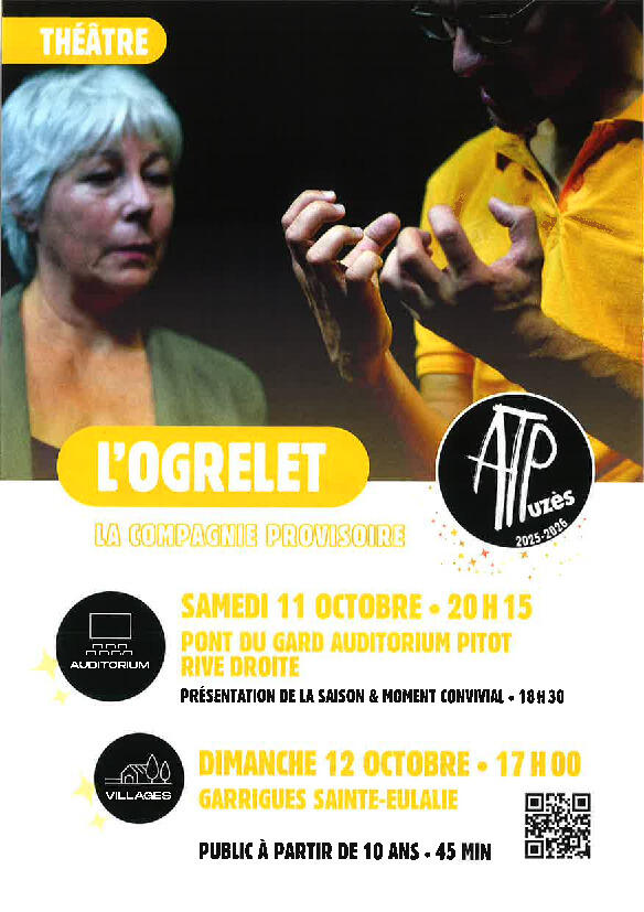 L'Association Théâtre populaire d'Uzès présente la pièce l'Ogrelet au foyer de Garrigues-sainte-Eulalie, cette représentation est pour tout public à partir de 10 ans.
