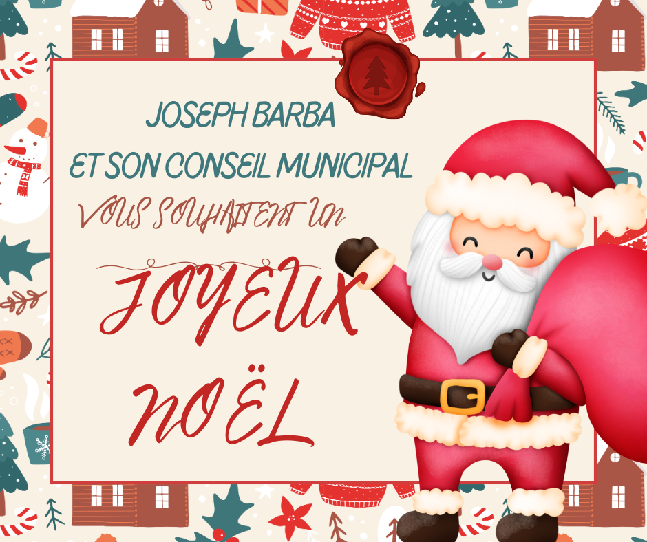 Joyeux noël et excellentes fêtes de fin d'année 24/12/25 De la part de Joseph Barba, des élus et de tout le personnel