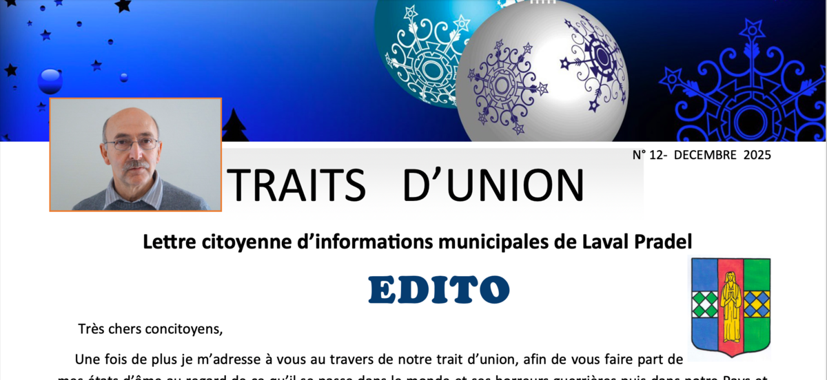 Le numéro de décembre de la lettre Traits d'union est arrivé dans vos boites à lettres.