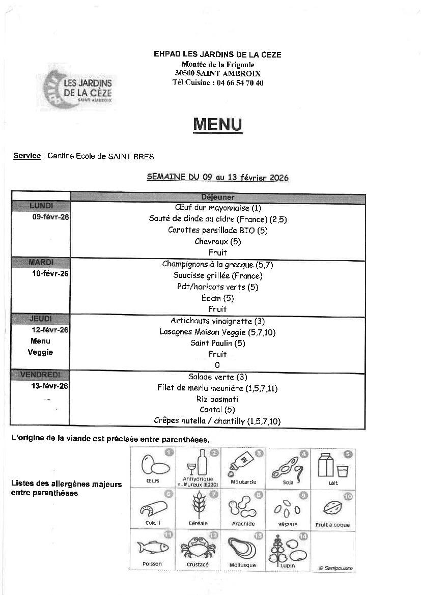 Menu cantine