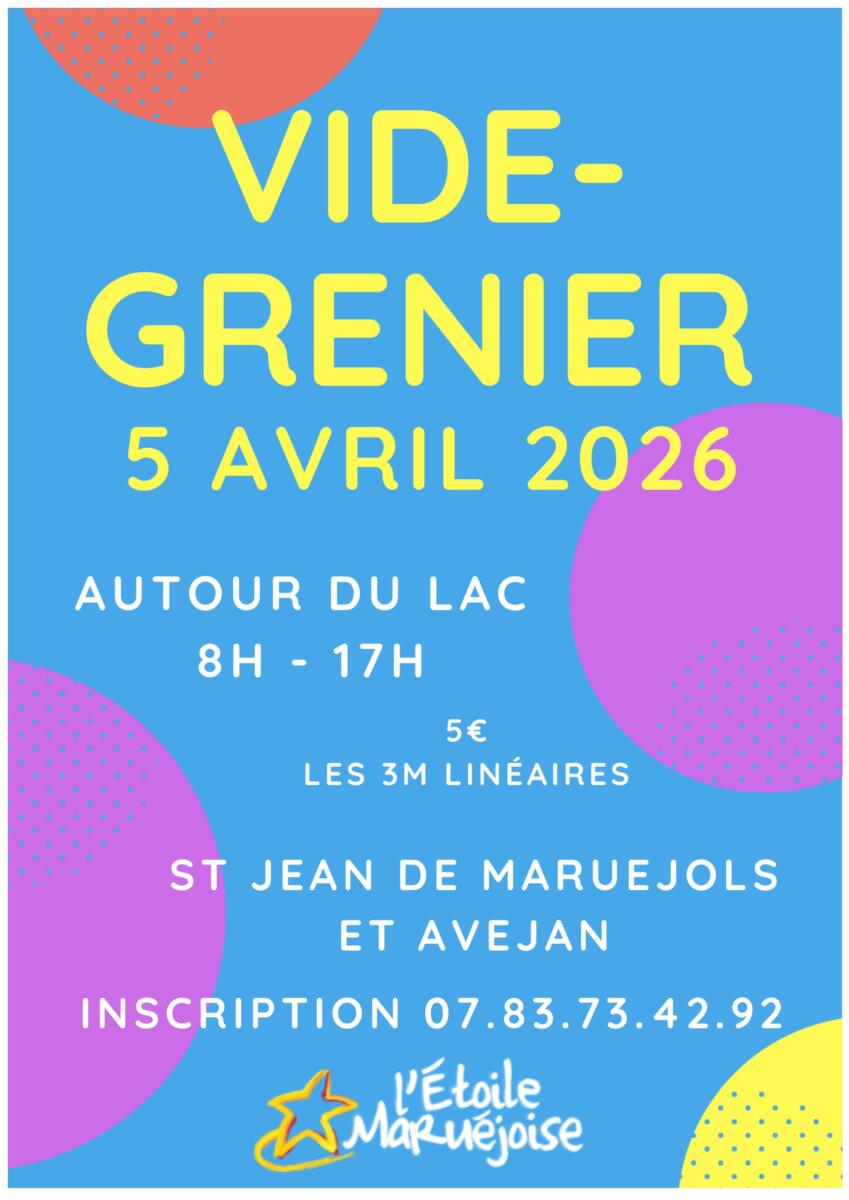 👉 Vide-grenier de l'Etoile Maruéjoise le 5 avril 2026 de 8h à 17h autour du lac et sur l'esplanade