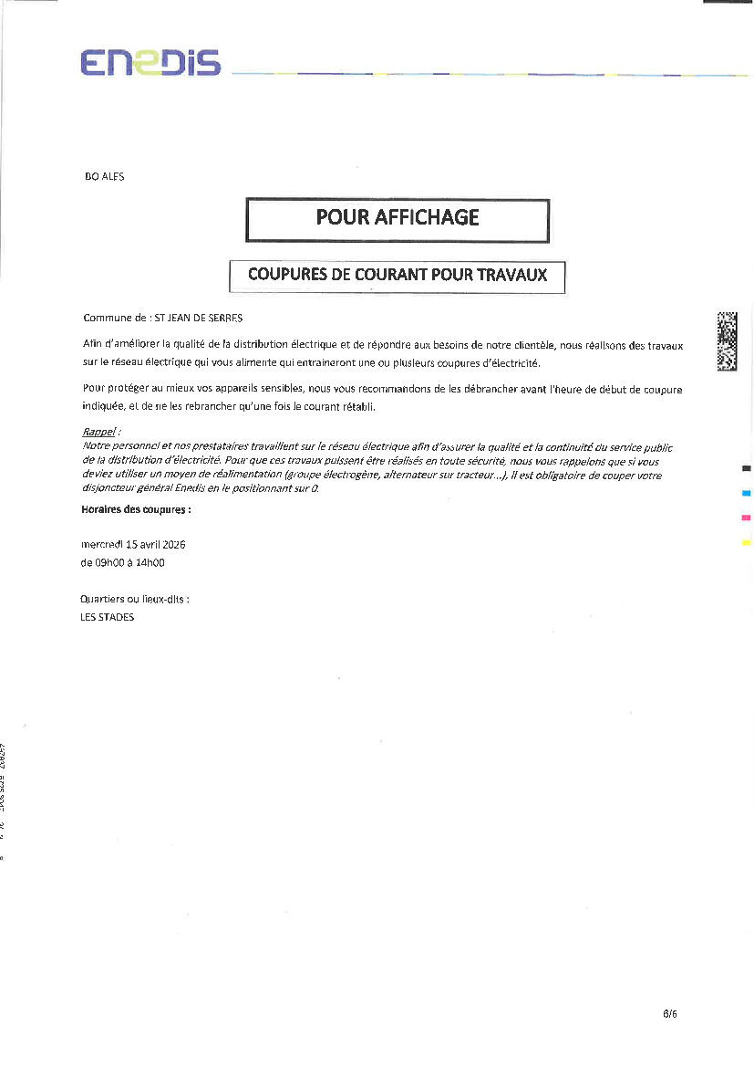 🔌 AVIS DE COUPURE DE COURANT — QUARTIER LES STADES ⚠️