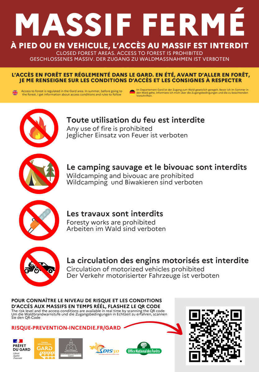 MASSIF FORESTIER FERME -RISQUE INCENDIE TRES SEVERE- 15 AOUT
