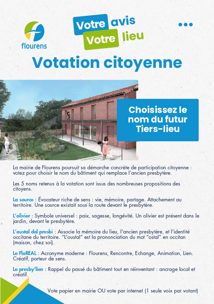 Rappel : permanence Mairie pour vote du nom du Tiers-lieu