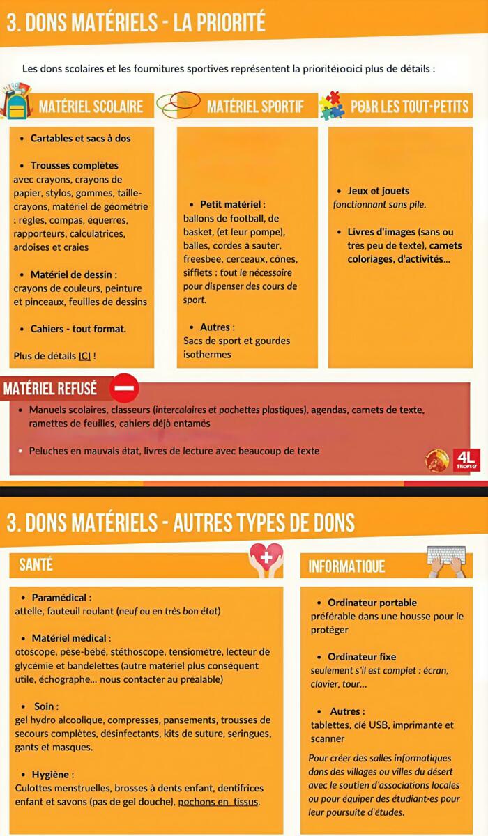 Merci de déposer vos dons à la mairie durant les heures d'ouverture.