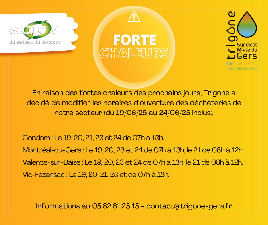 / Trigone, Horaires modifiés en fonction des fortes chaleurs