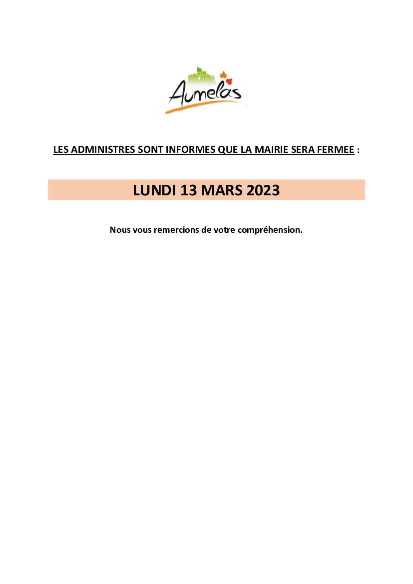 INFO MAIRIE - FERMETURE MAIRIE PENDANT LES FETES