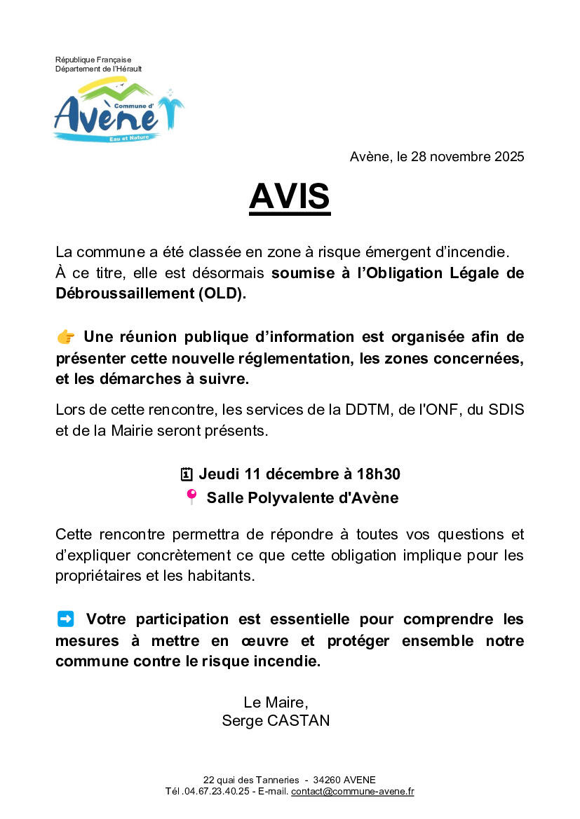 IMPORTANT : réunion Obligation Légale de Débroussaillement