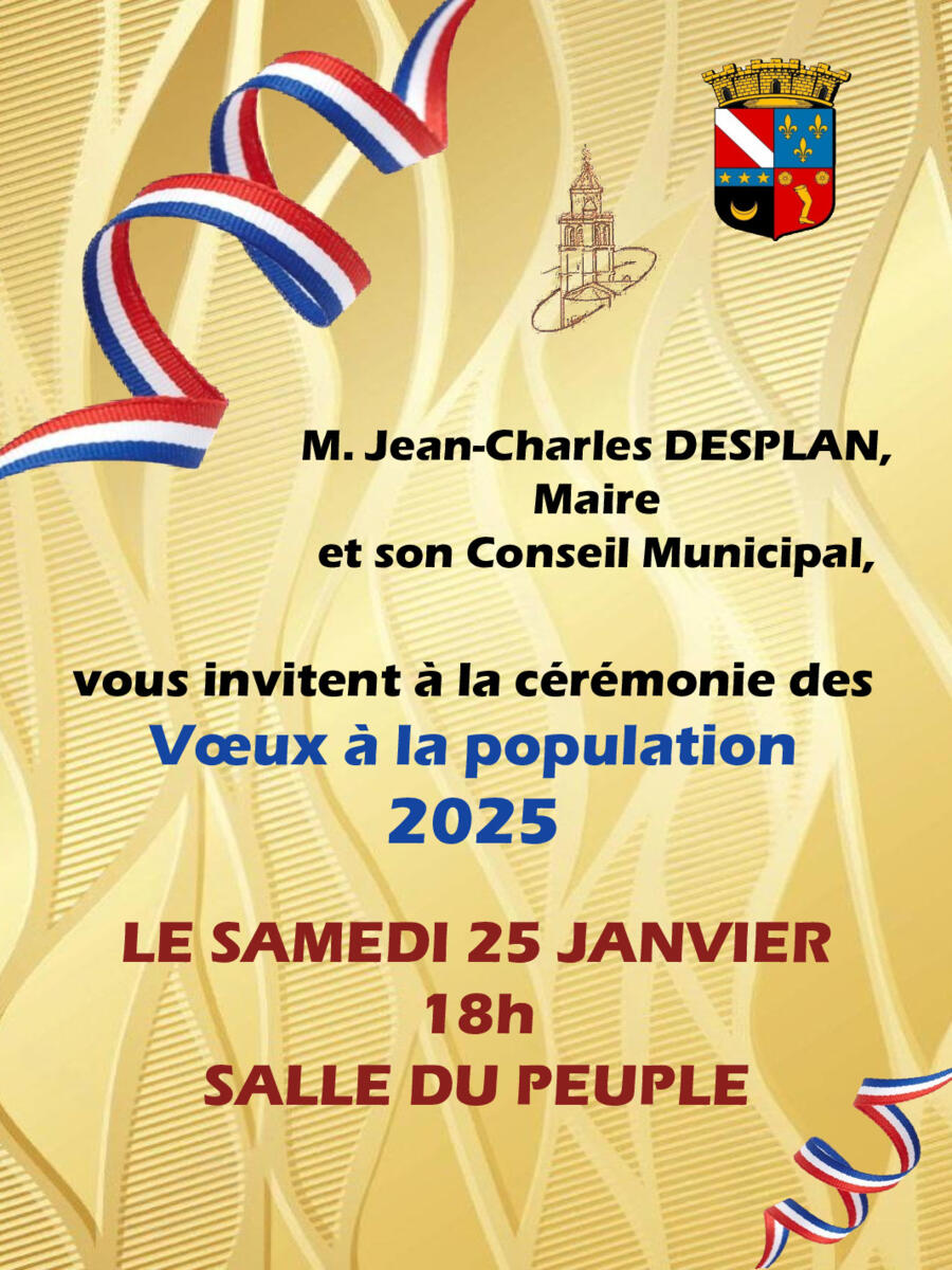 Vous invitent à la cérémonie des VOEUX à la population samedi 25 janvier à 18h00 à la salle du Peuple.