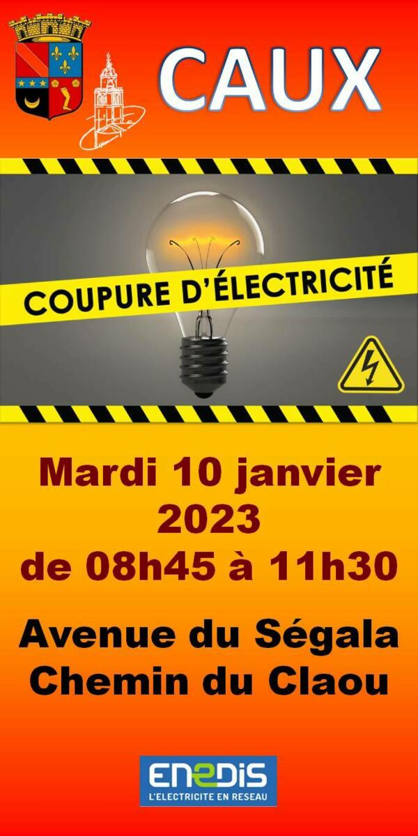 ENEDIS nous informe qu'une coupure de courant aura lieu mardi 10/01 de 8h45 à 11h30.