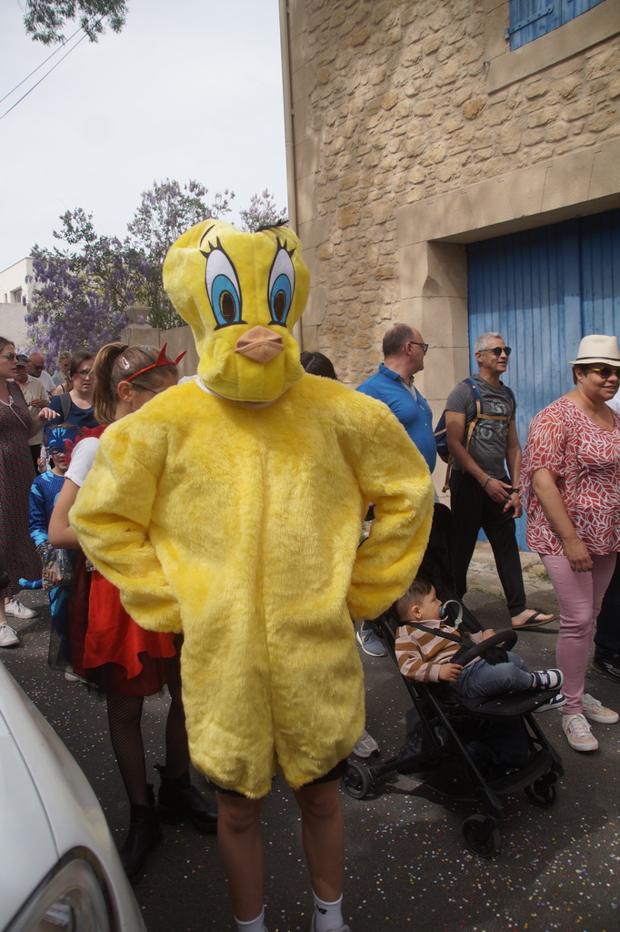 En tête du cortège, M. Carnaval préparé par les Parents d'élèves de l'association APE-CE