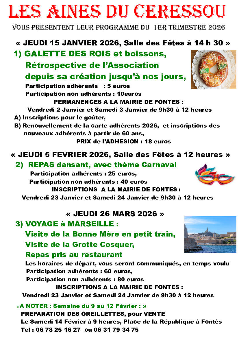 Programme Les Aînés du Céressou / 1er trimestre 2026