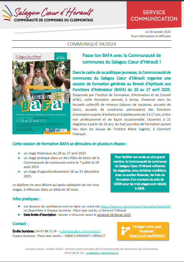 CCC Salagou Cœur d'Hérault / Communication BAFA