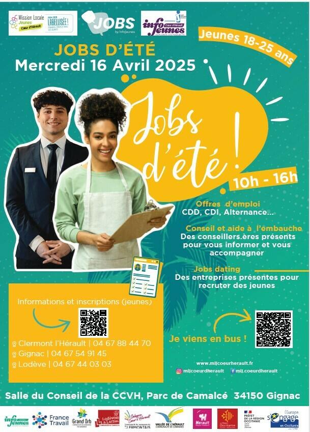 La Mission Locale Jeunes du Cœur d’Hérault organise en partenariat avec le Centre Régional Information Jeunesse Occitanie et France Travail, une journée dédiée aux recrutements pour les “Jobs d’été”.
