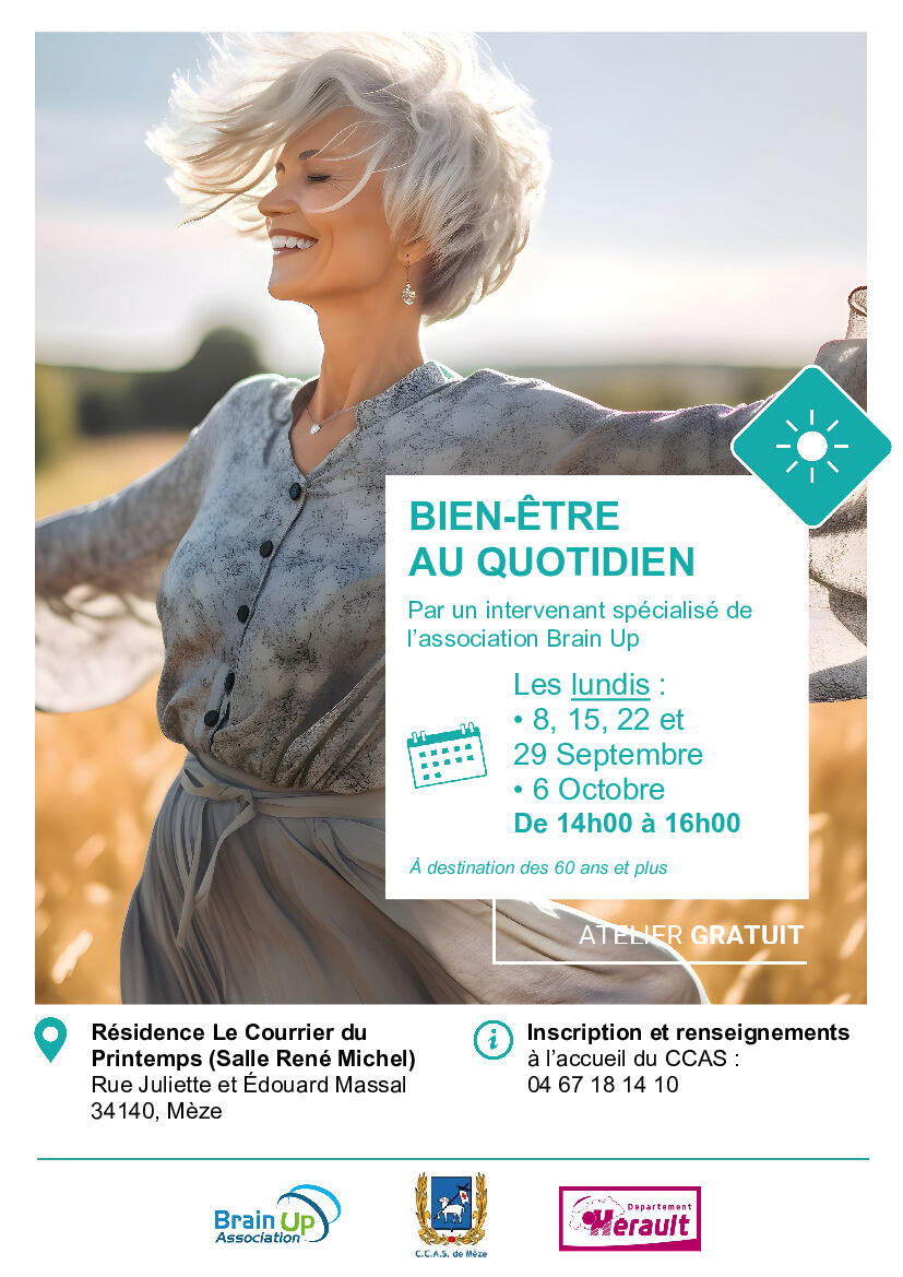 En partenariat avec Brain Up, le CCAS vous propose 5 ateliers pour prendre soin de soi au quotidien.