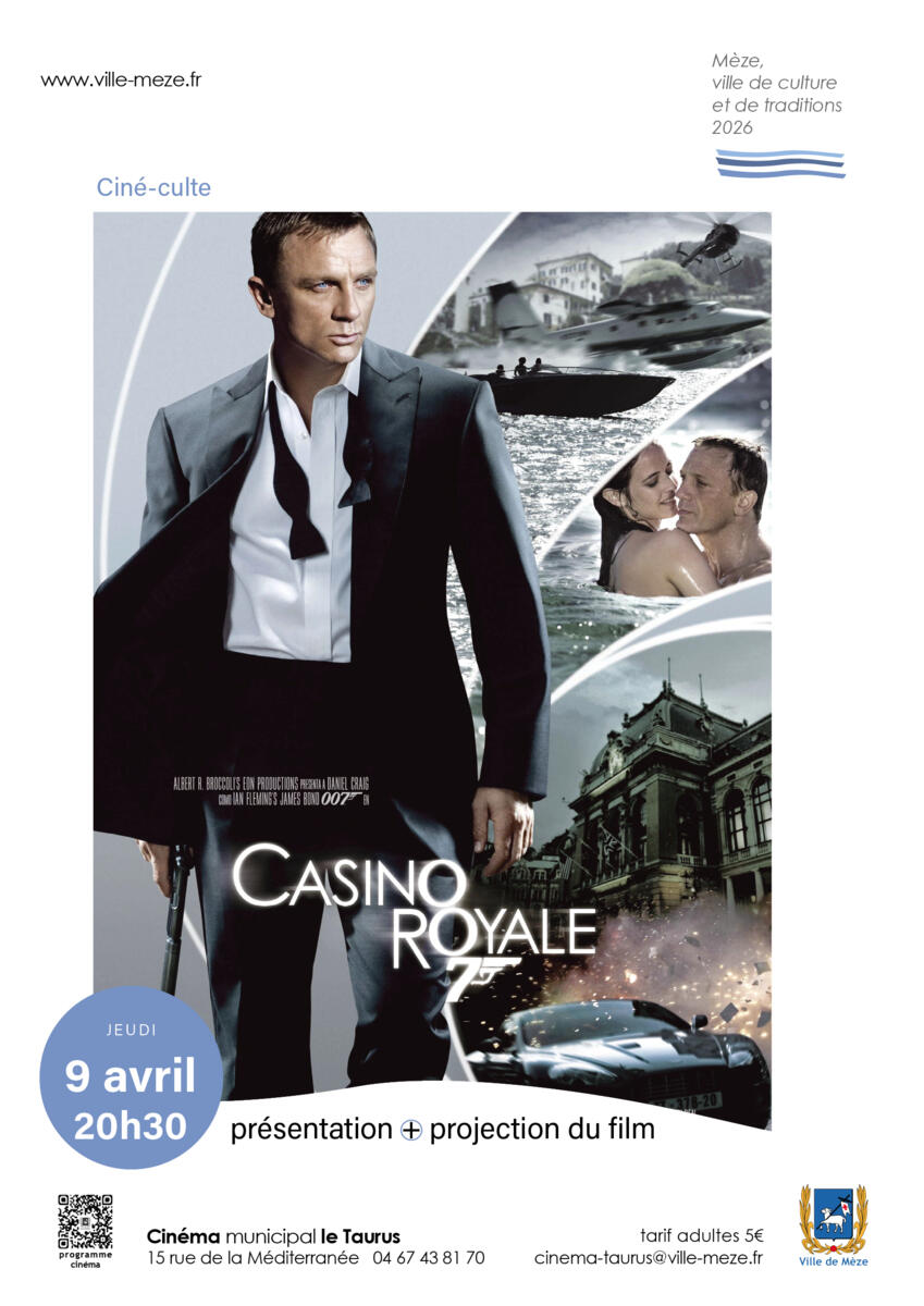 Nous vous rappelons que votre prochaine séance ciné-culte autour du film James Bond Casino Royale aura lieu demain soir à 20h30.