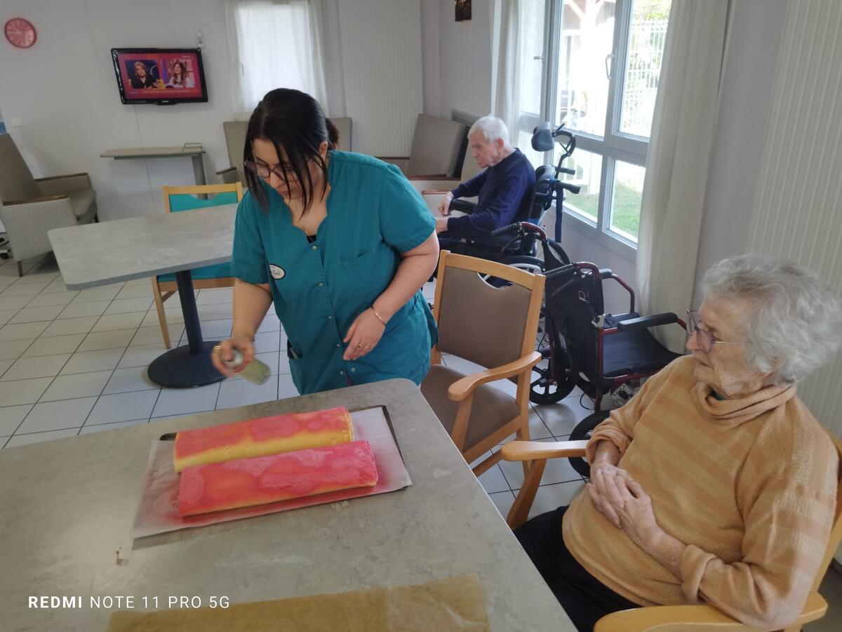 Le gâteau préparé s'est paré de rose à l'occasion de la journée de la femme, qui pour les résidentes est une journée importante car elle marque des évènements qui font échos à leurs jeunesse( droits de la femme, parité...)