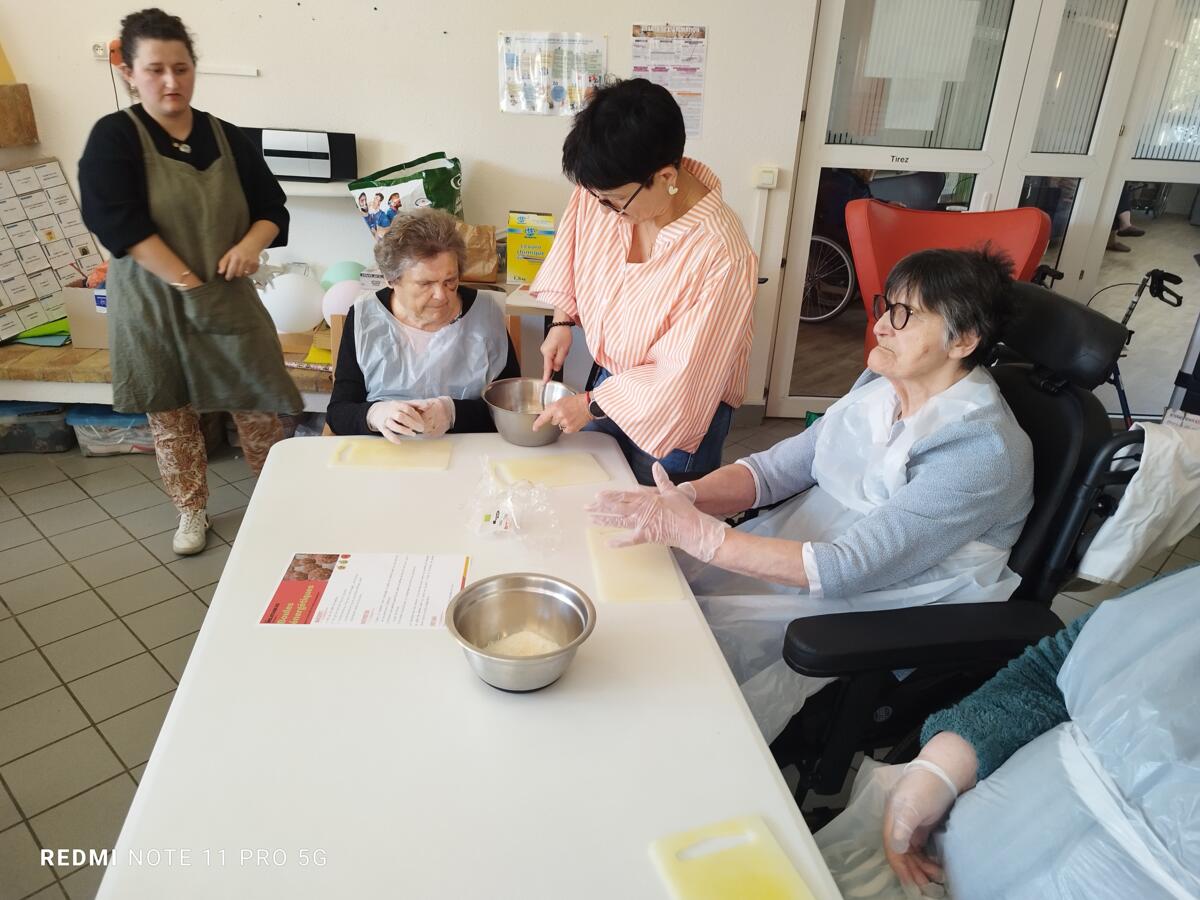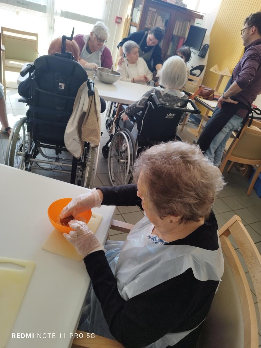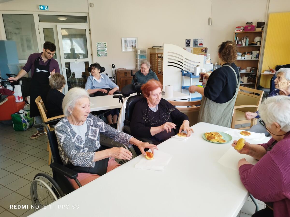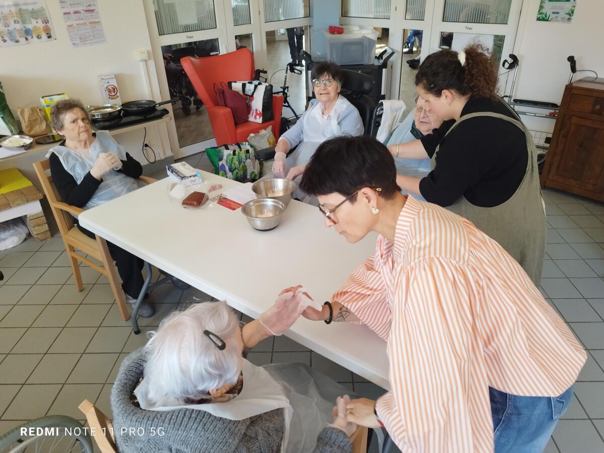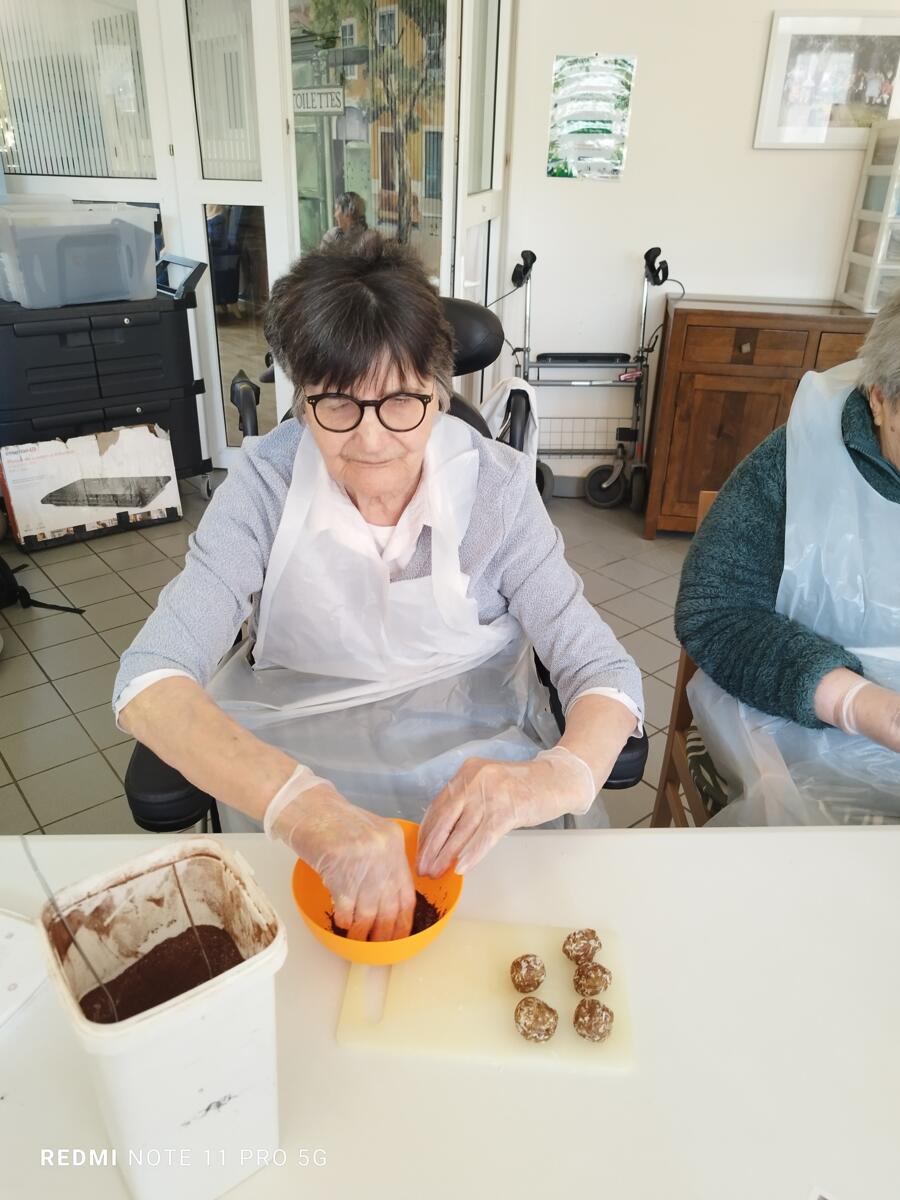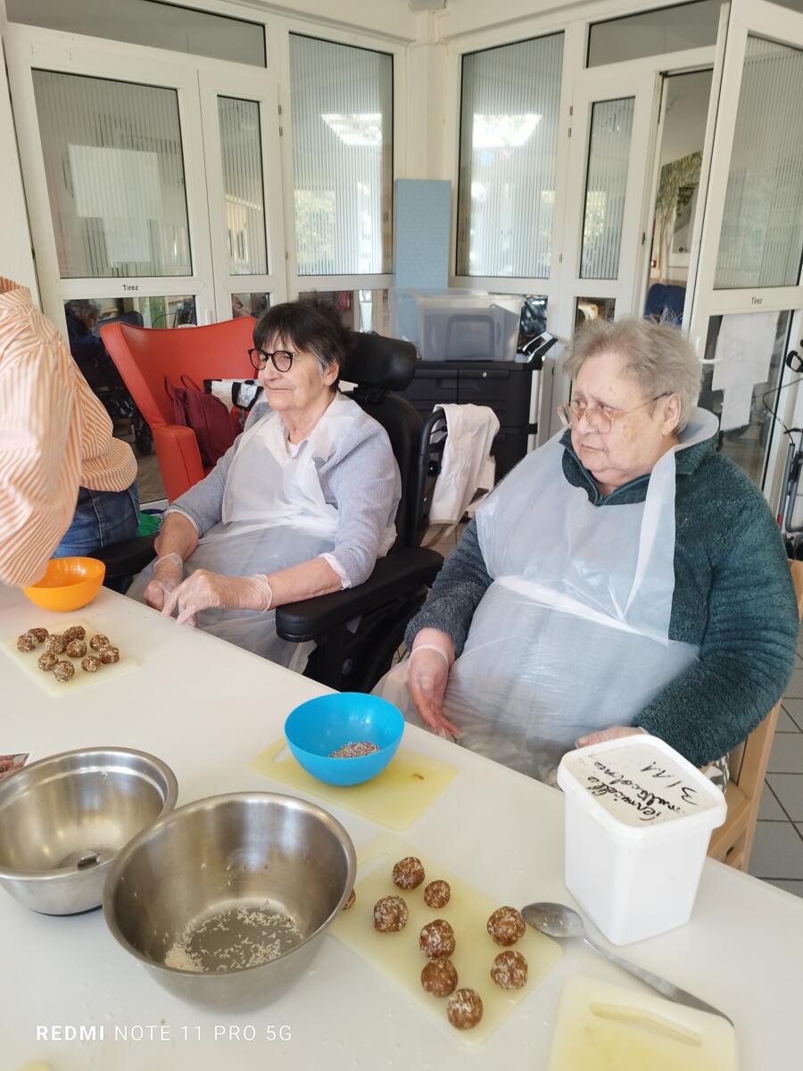 L'après-midi, une nutritionniste est venue expliquer et proposer deux recettes simples aux résidents en lien avec le projet "les insatiables" Ils ont pu préparer et déguster des boules énergétiques et des pancakes. Une journée appréciée de tous et qui a connu un vif succès. C'est certain, nous le referons.