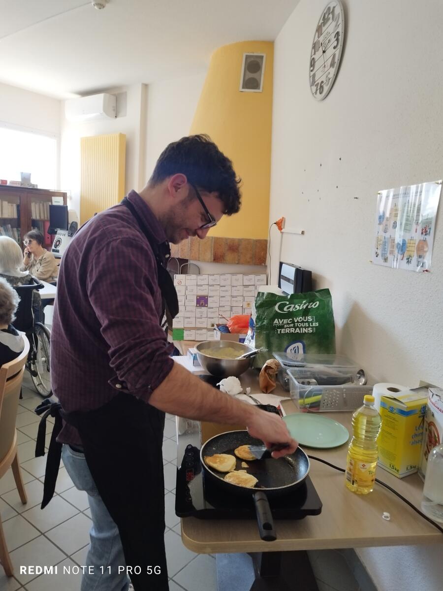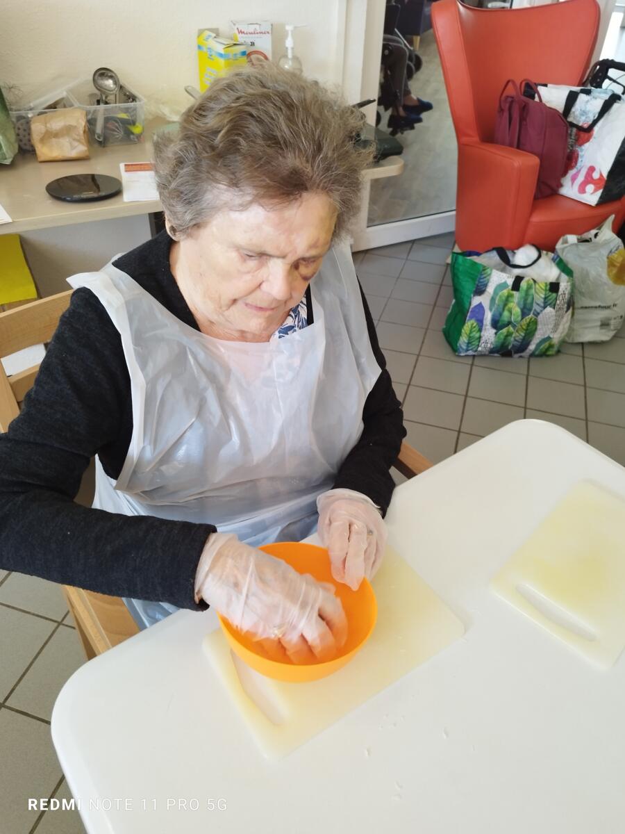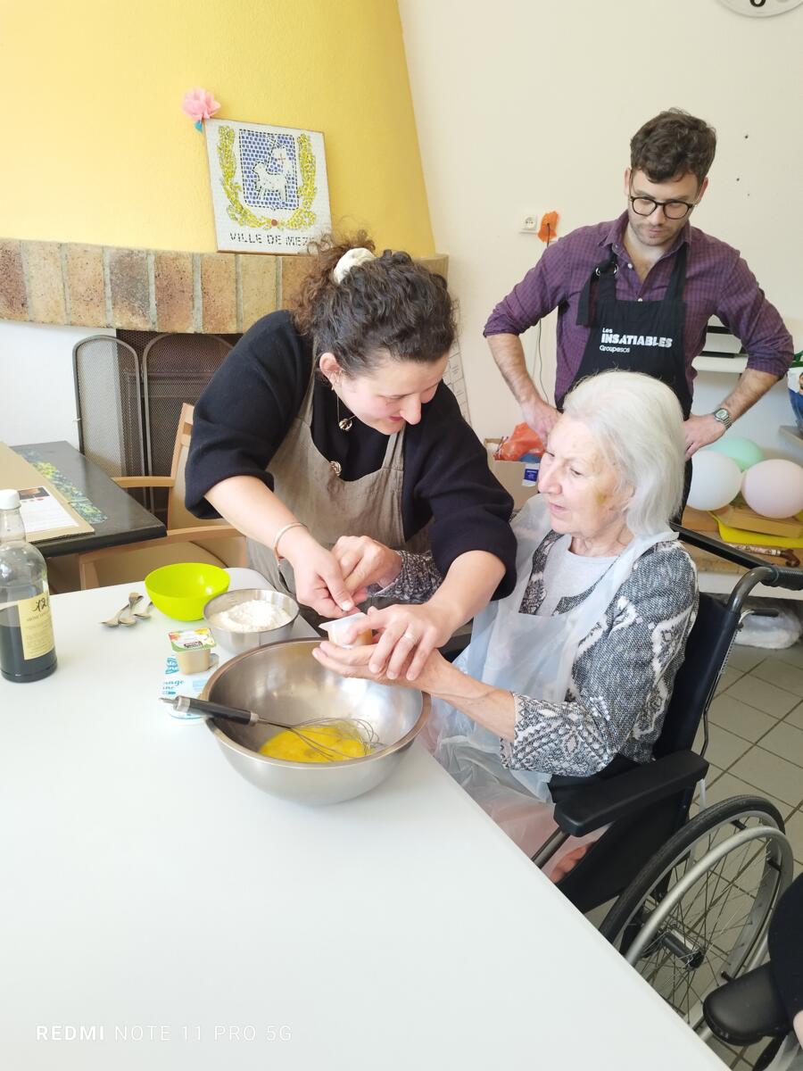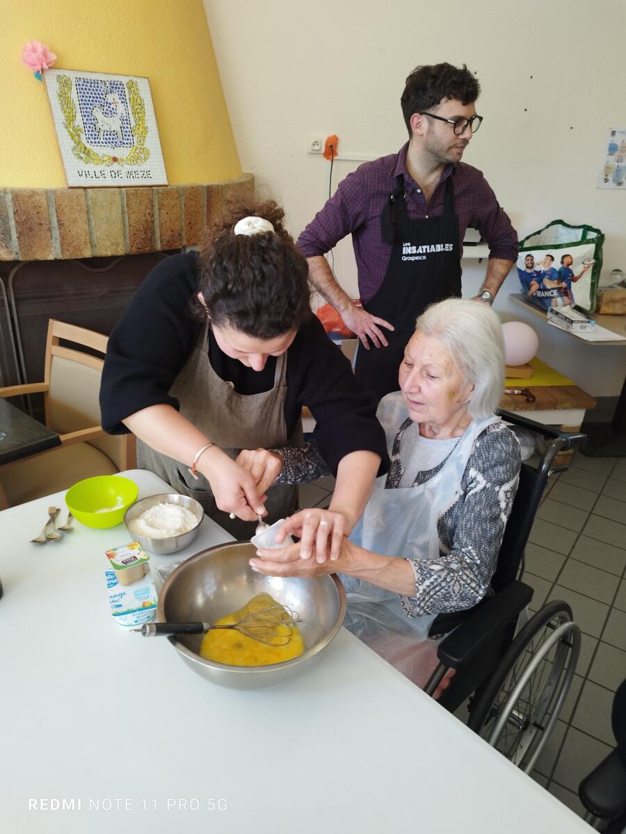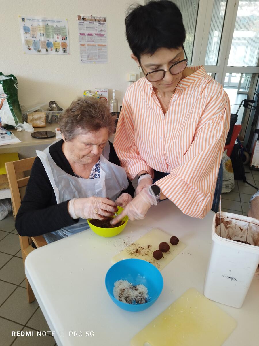 L'après-midi, une nutritionniste est venue expliquer et proposer deux recettes simples aux résidents en lien avec le projet "les insatiables" Ils ont pu préparer et déguster des boules énergétiques et des pancakes. Une journée appréciée de tous et qui a connu un vif succès. C'est certain, nous le referons.