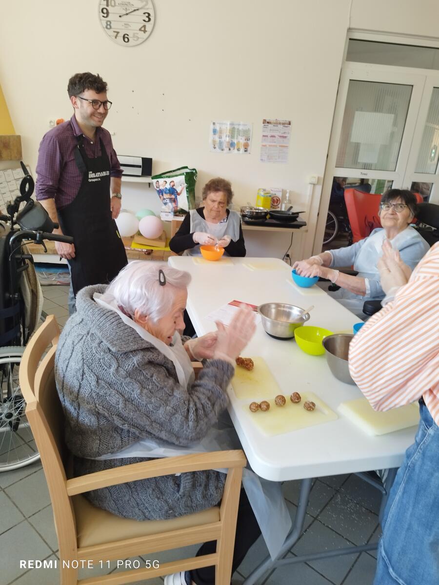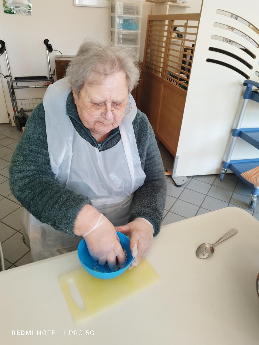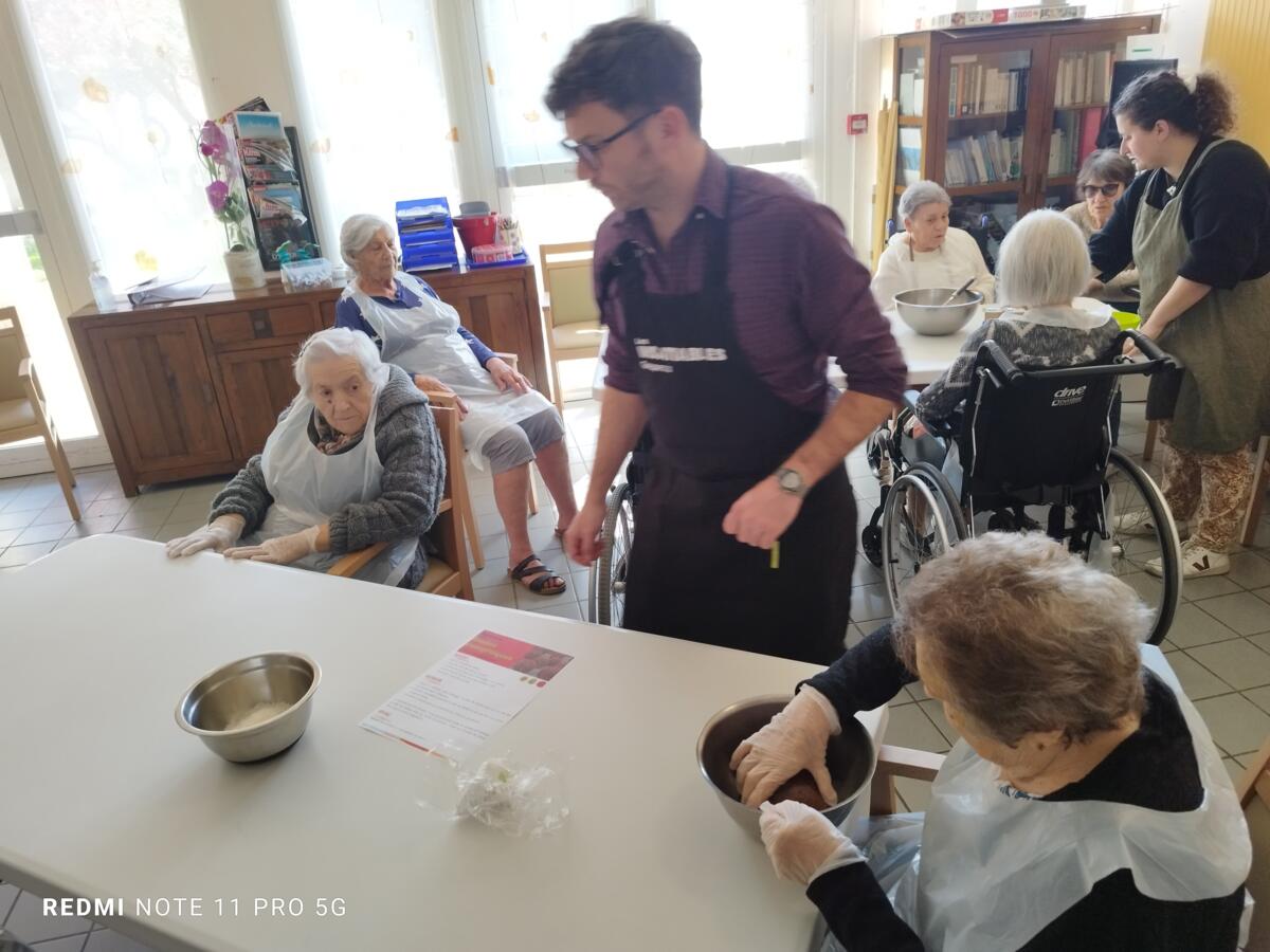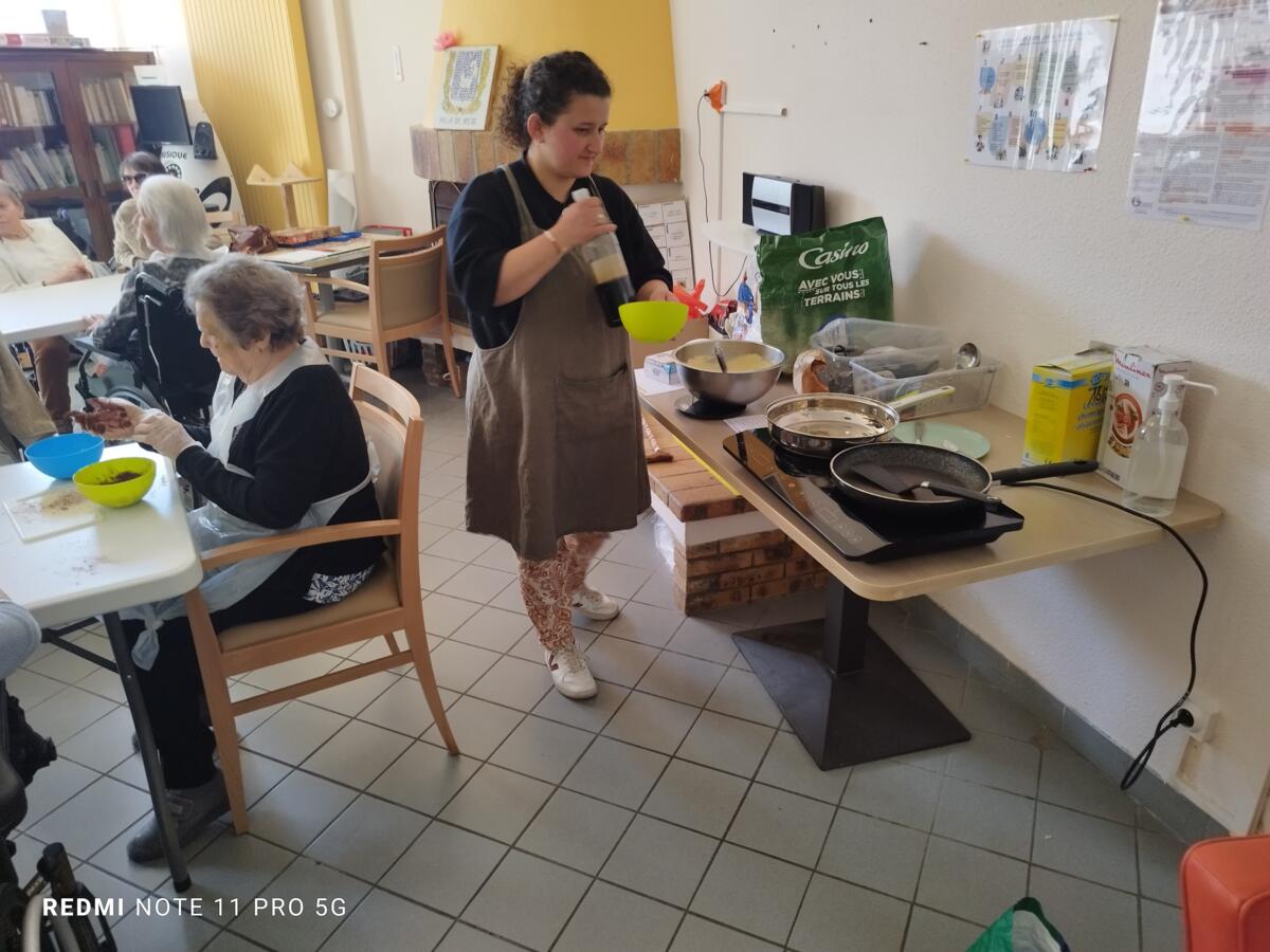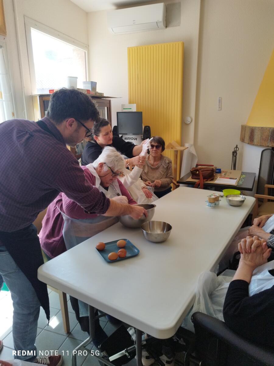 L'après-midi, une nutritionniste est venue expliquer et proposer deux recettes simples aux résidents en lien avec le projet "les insatiables" Ils ont pu préparer et déguster des boules énergétiques et des pancakes. Une journée appréciée de tous et qui a connu un vif succès. C'est certain, nous le referons.