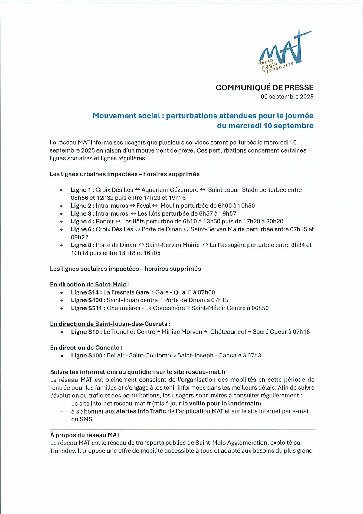 / Mouvement de grève - MERCREDI 10 SEPTEMBRE