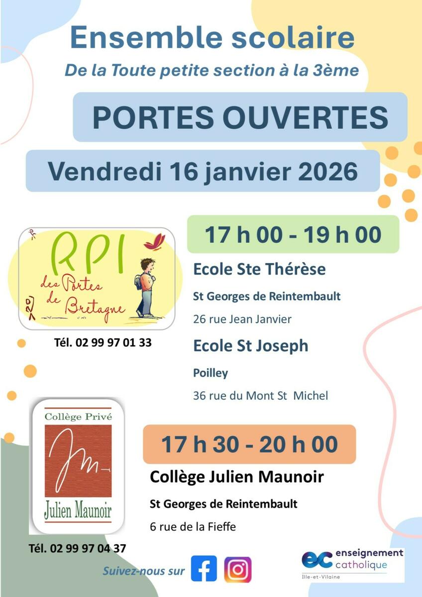 RPI Portes de Bretagne : portes ouvertes vendredi 16 janvier