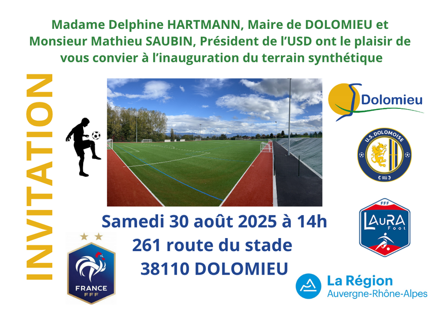 Inauguration du terrain de foot synthétique 21/8/25 Invitation à l'inauguration du terrain de foot synthétique le samedi 30 août 2025 à 14h