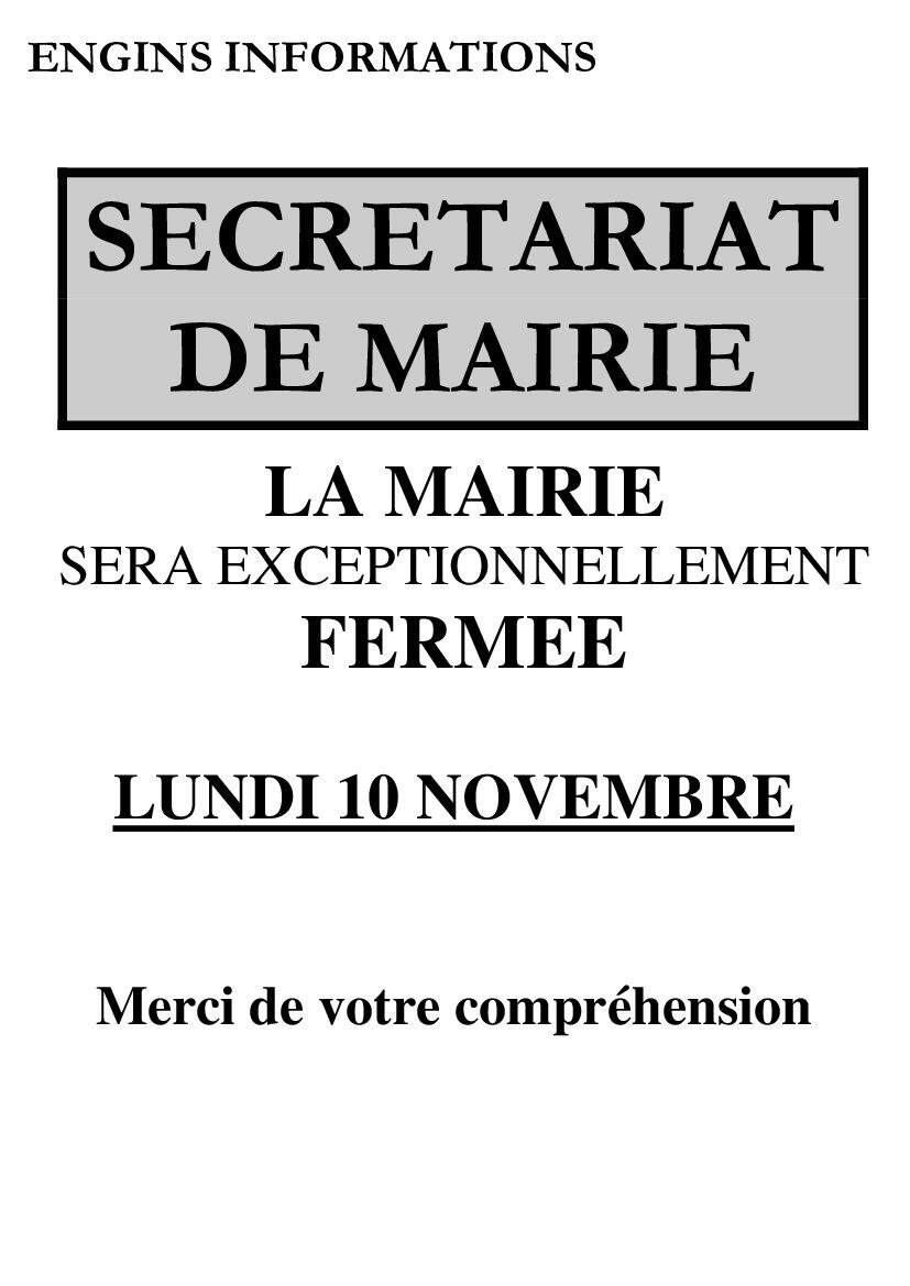 FERMETURE EXCEPTIONNELLE SECRÉTARIAT MAIRIE