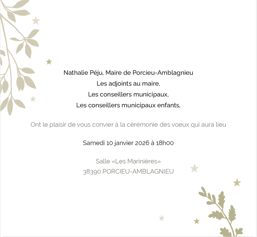 La municipalité de Porcieu-Amblagnieu vous adresse ses meilleurs voeux pour 2026
