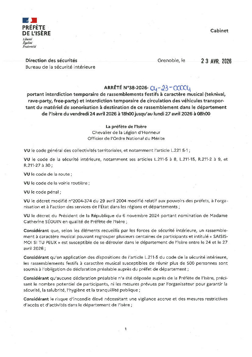 Arrêté préfectoral interdisant tout rassemblement automobile