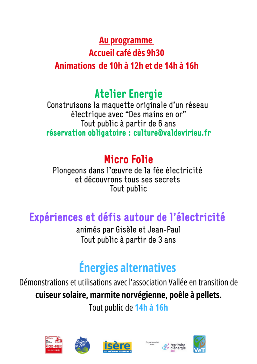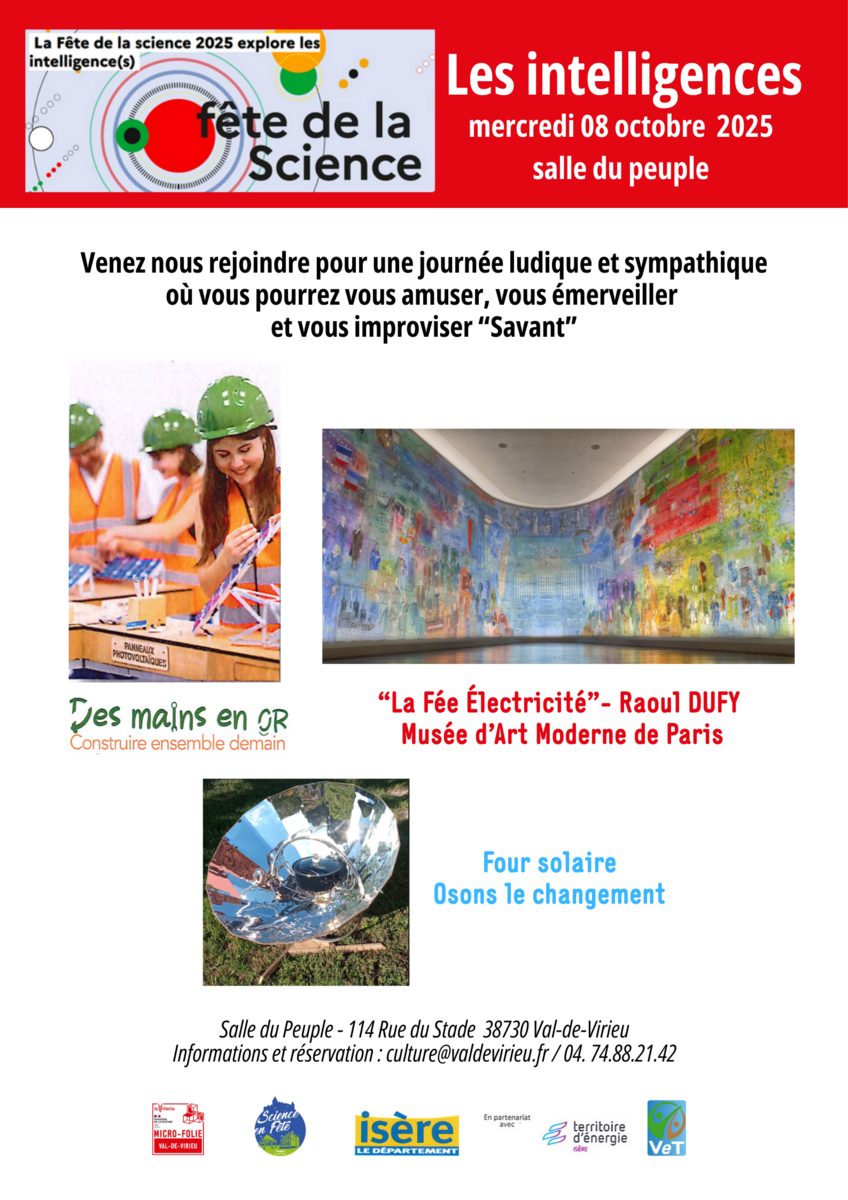 Fête de la science Mercredi 8 octobre 1/10/25 Pour participer, réservez par mail culture@valdevirieu.fr ou par téléphone au 04 74 88 21 42.