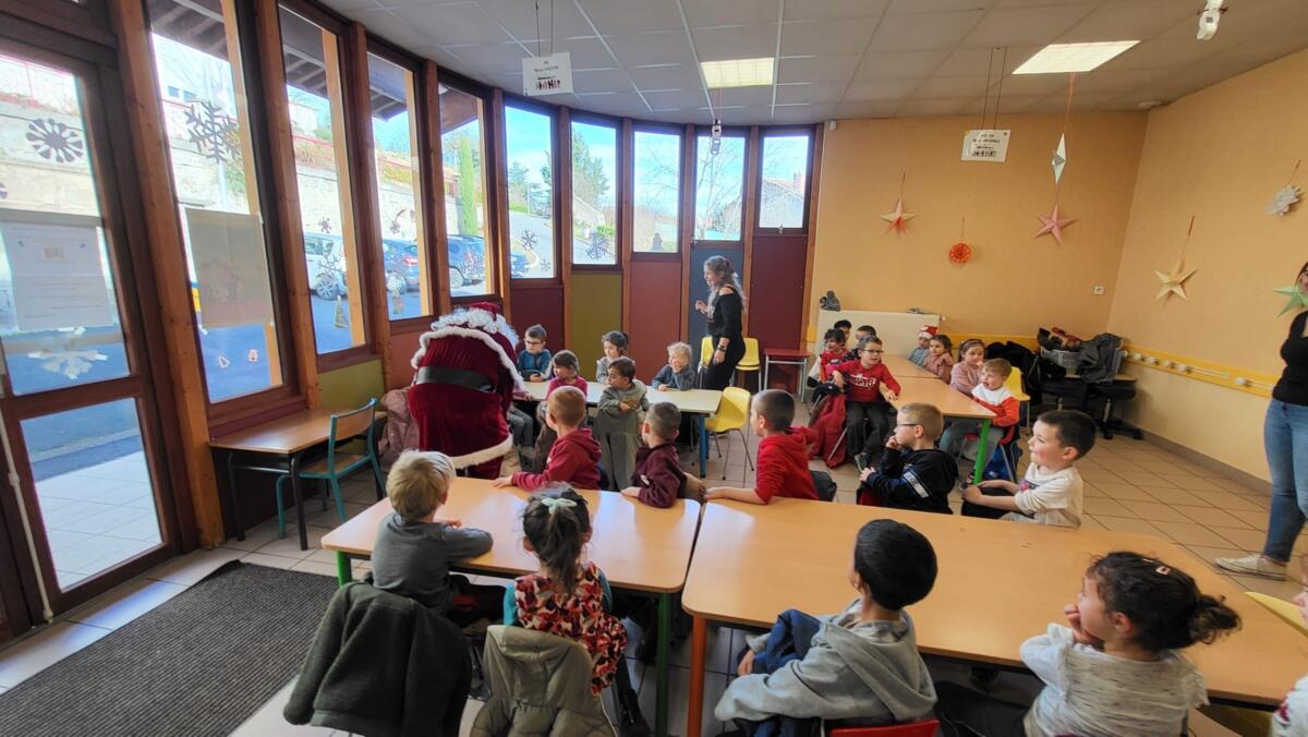 Le Père Noël a commencé sa tournée avec un peu d'avance à Boën la semaine dernière. Il est passé d'abord à la cantine où les enfants avaient répété une chanson qu'ils ont pu interpréter en son honneur avant d'aller le lendemain à la Résidence Autonomie où nos seniors ont pu se délecter d'un repas de Noël concocté par notre chef avant de se voir remettre un petit cadeau.