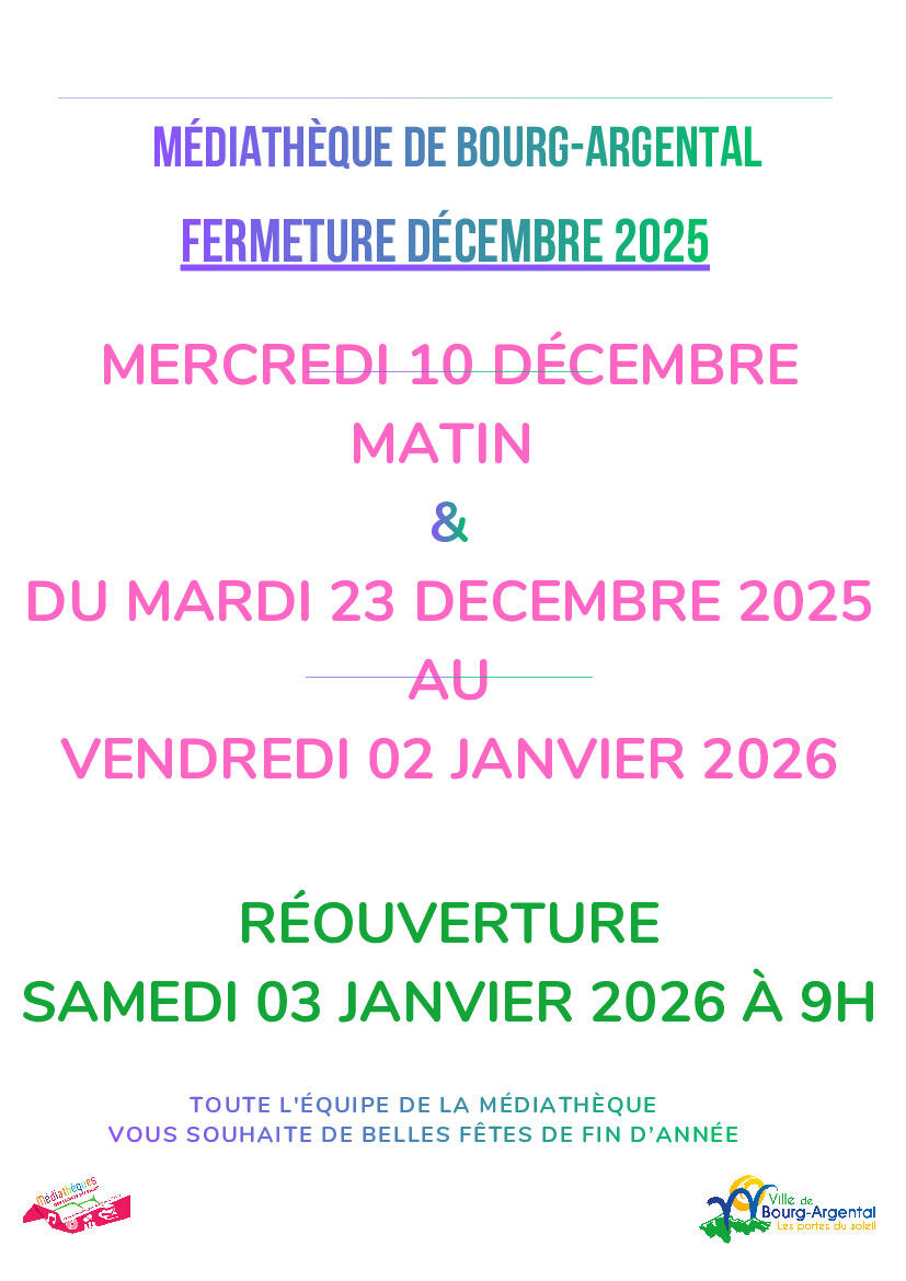 Fermeture fin d'année Médiathèque Municipale Bourg-Argental