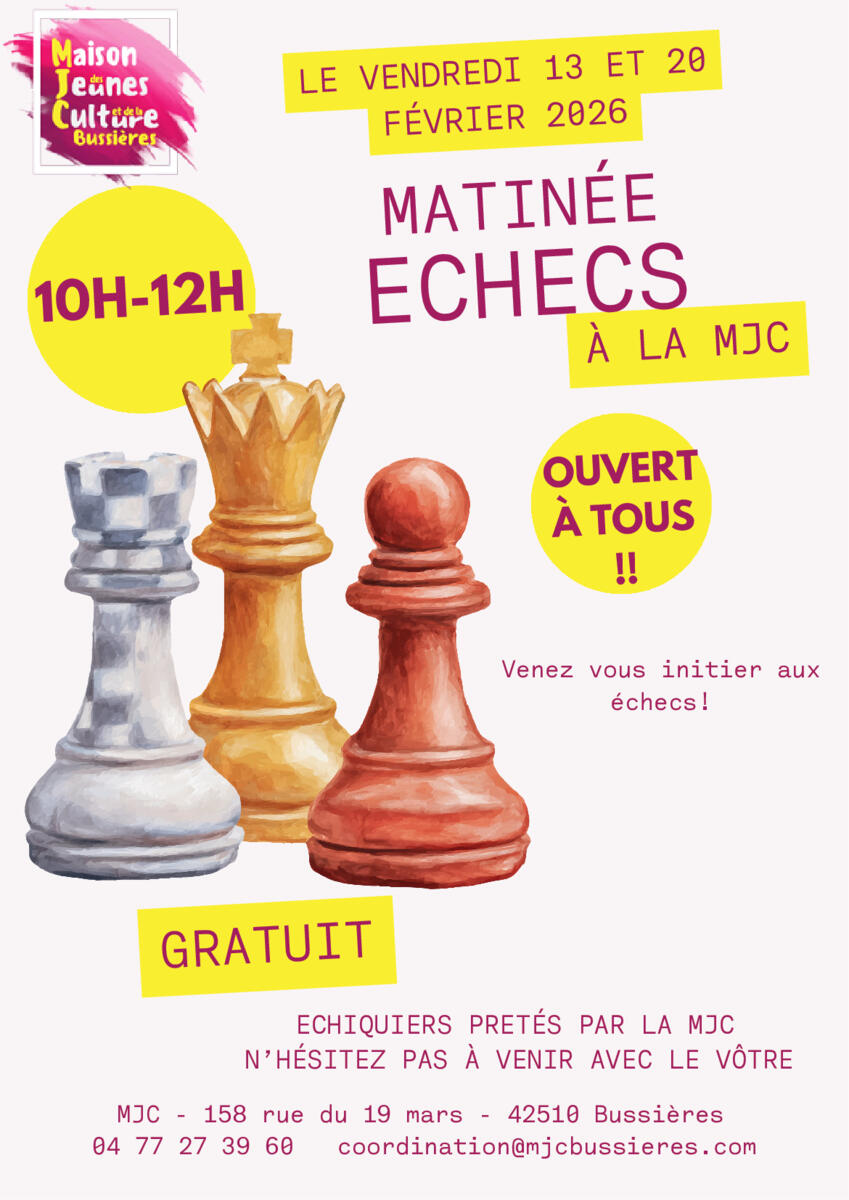 MJC Matinée Echecs les vendredis 13 et 20 février 2026