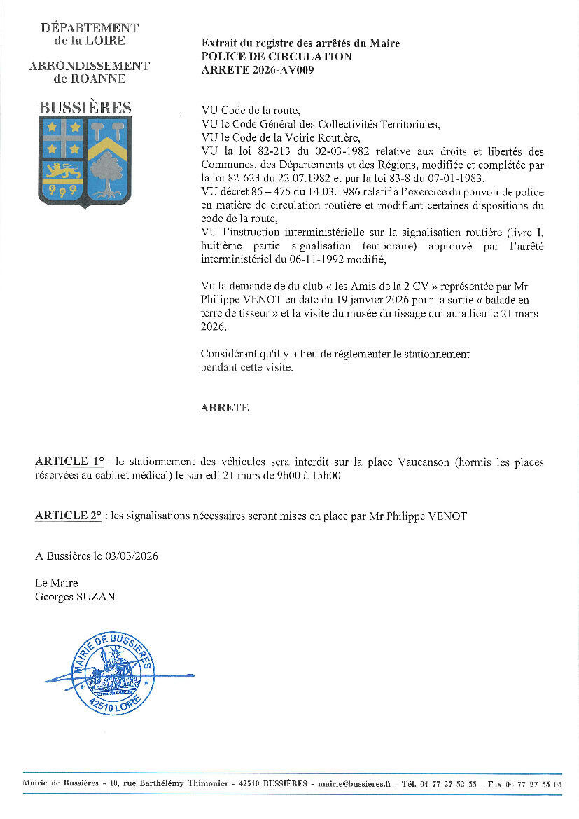 arrêtés de circulation et stationnement