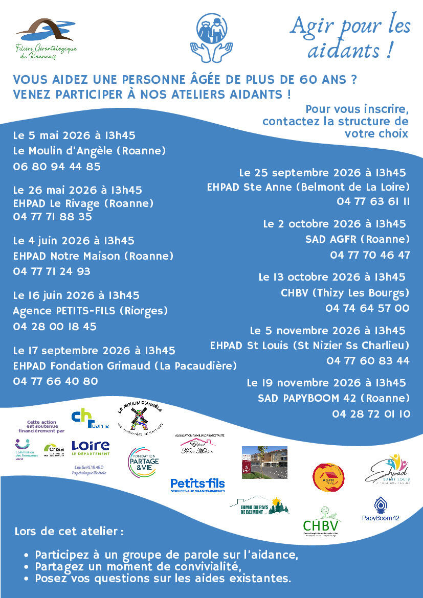 Ainsi, en 2026, 10 « ateliers aidants » seront organisés sur 10 structures du territoire de la Filière Gérontologique du Roannais.