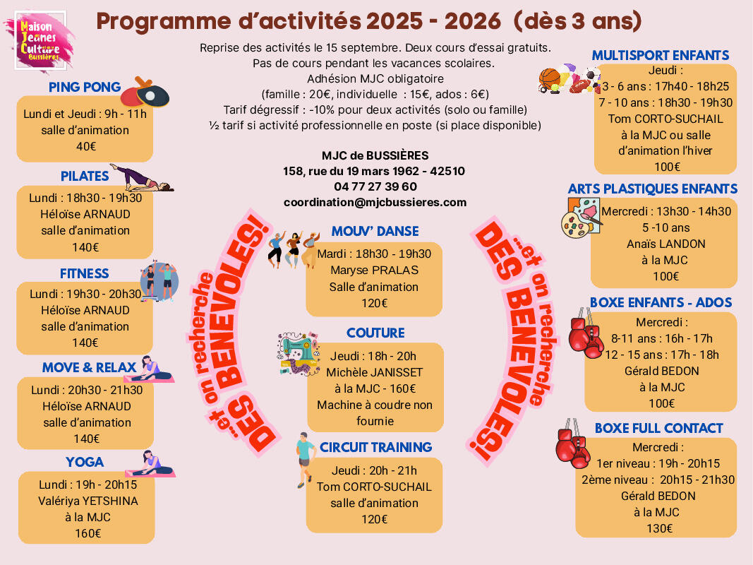 Programme activité MJC pour la rentrée