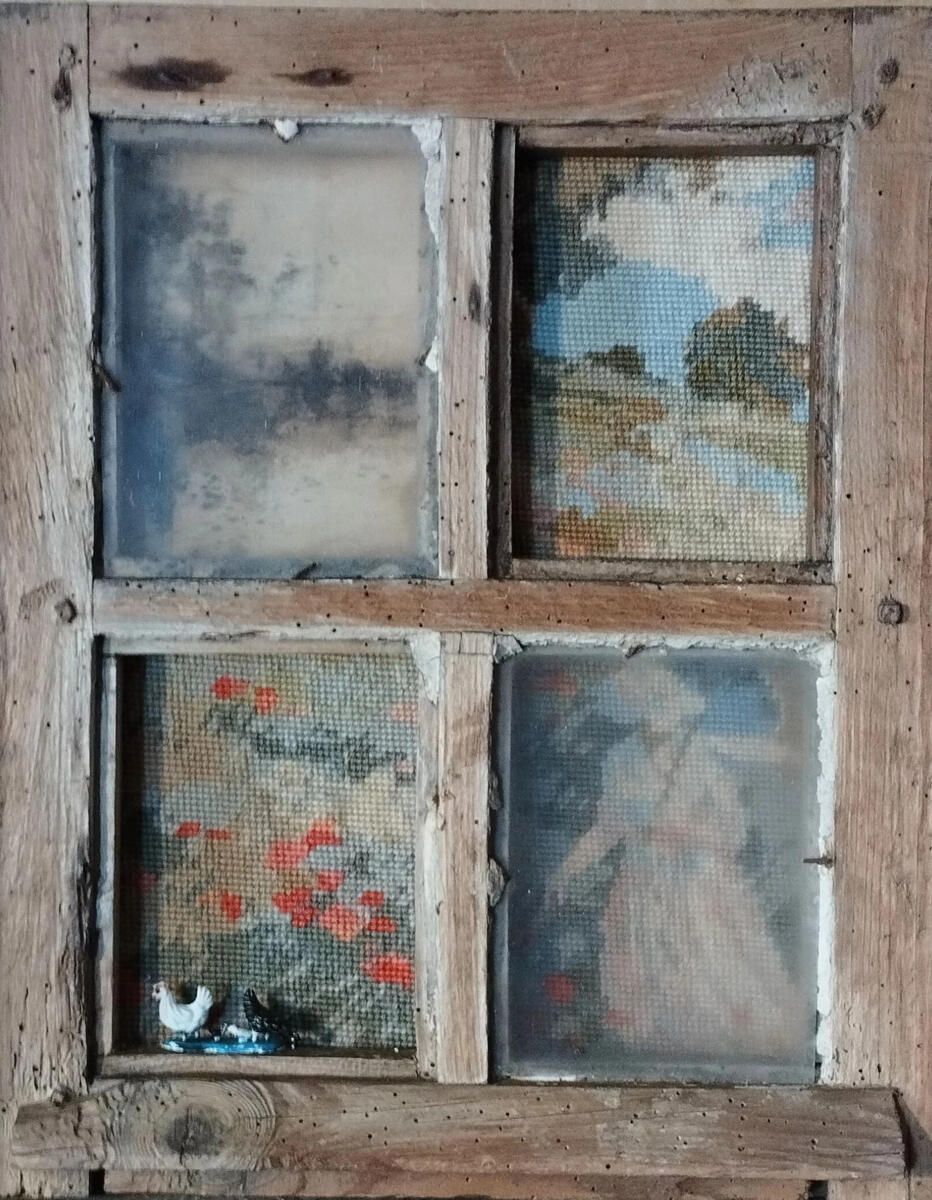 "A partir de cadres, d'objets anciens, divers et variés, de matériaux récupérés, marqués par le passage du temps, je revendique le "ça peut encore servir" de mes origines altiligériennes, qui sont la source de mon inspiration.